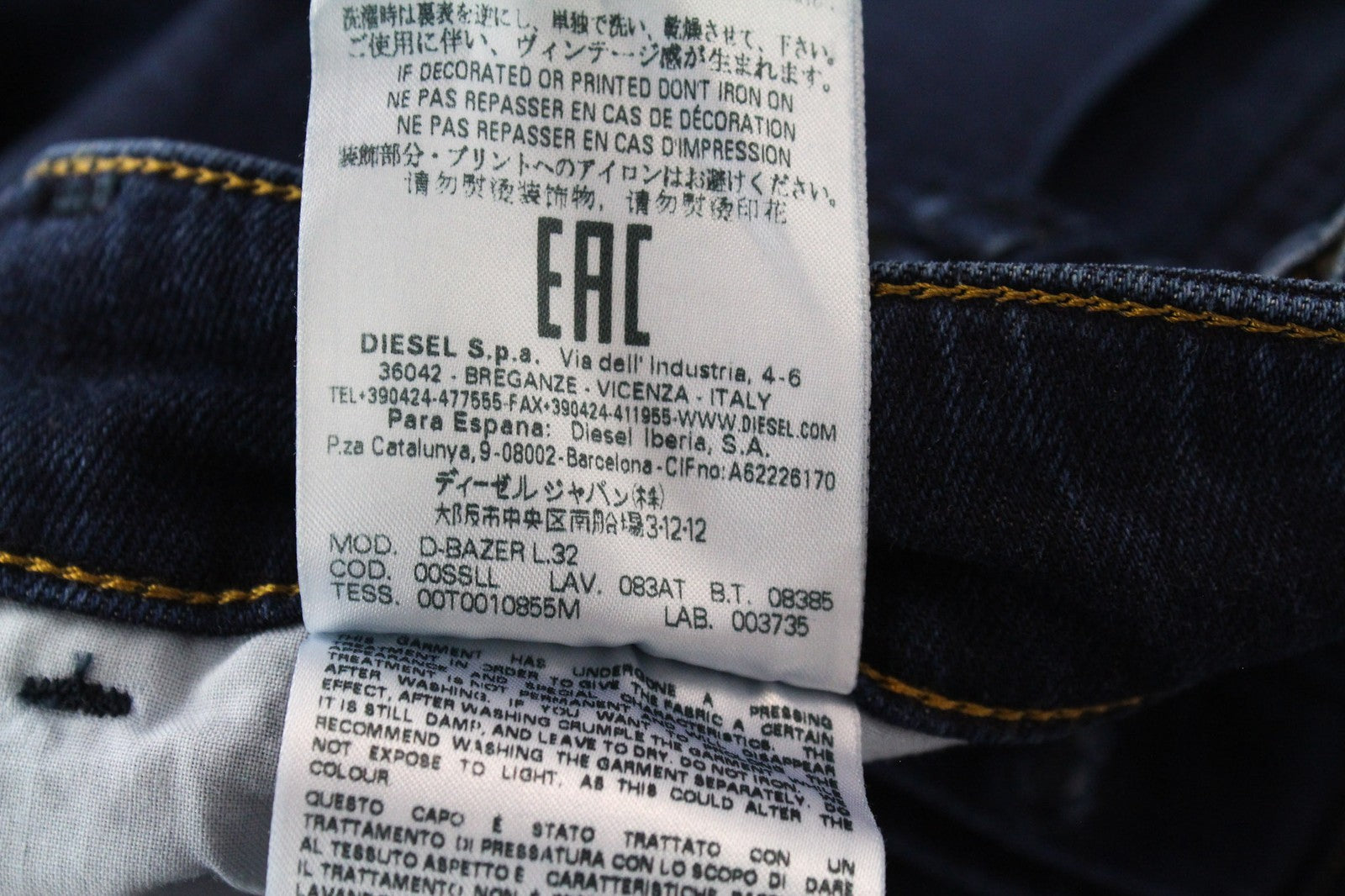DIESEL D-Bazer 083AT vyriški tamsiai mėlyni džinsai W26/L32 siaurėjantys tamprūs džinsai su sagomis