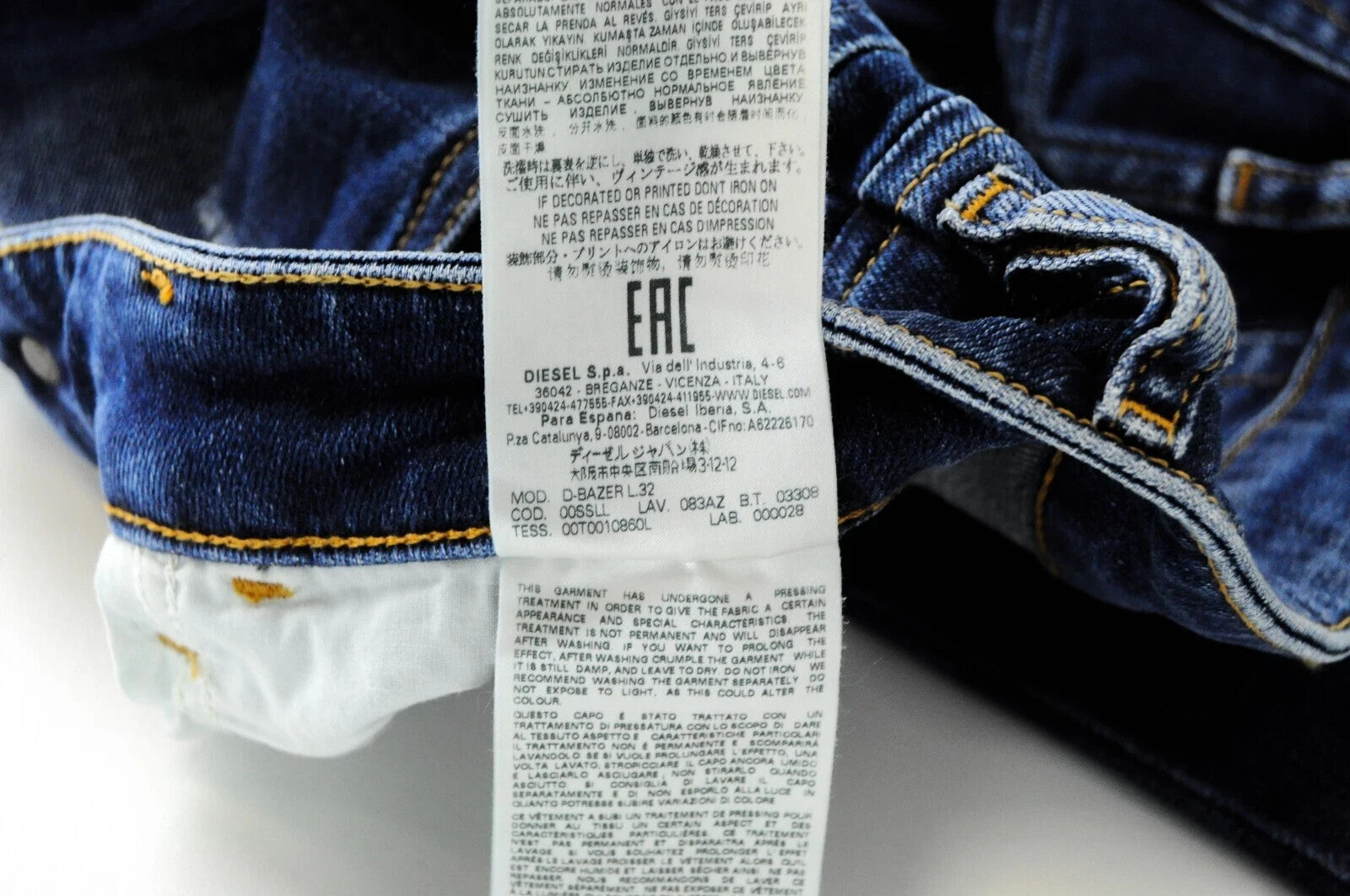 DIESEL D-Bazer 083AZ vyriški džinsai W27/L32 siaurėjantys skalbti mėlyni tamprūs džinsai