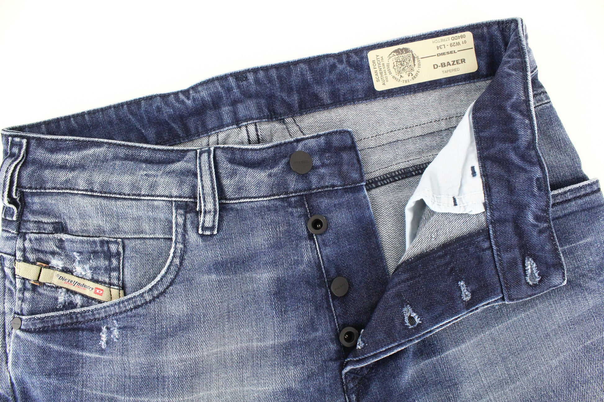 DIESEL D-Bazer 084DD vyriški džinsai W29/L34 siaurėjantys, tamprūs, skalbtos medvilnės, mėlynos spalvos