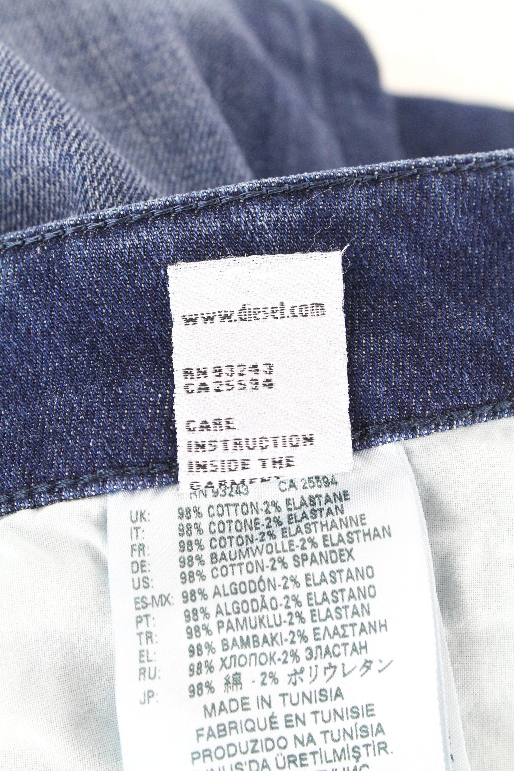 DIESEL D-Bazer 084GR vyriški džinsai W29/L32 mėlyni su sagomis ir tampriu medvilniniu audiniu.