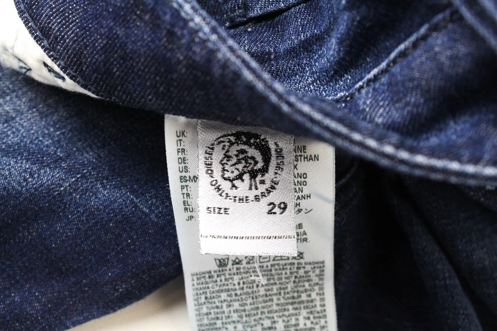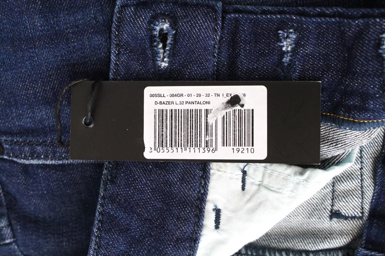 DIESEL D-Bazer 084GR vyriški siaurėjantys skalbti mėlyni medvilniniai tamprūs džinsai W29 L32