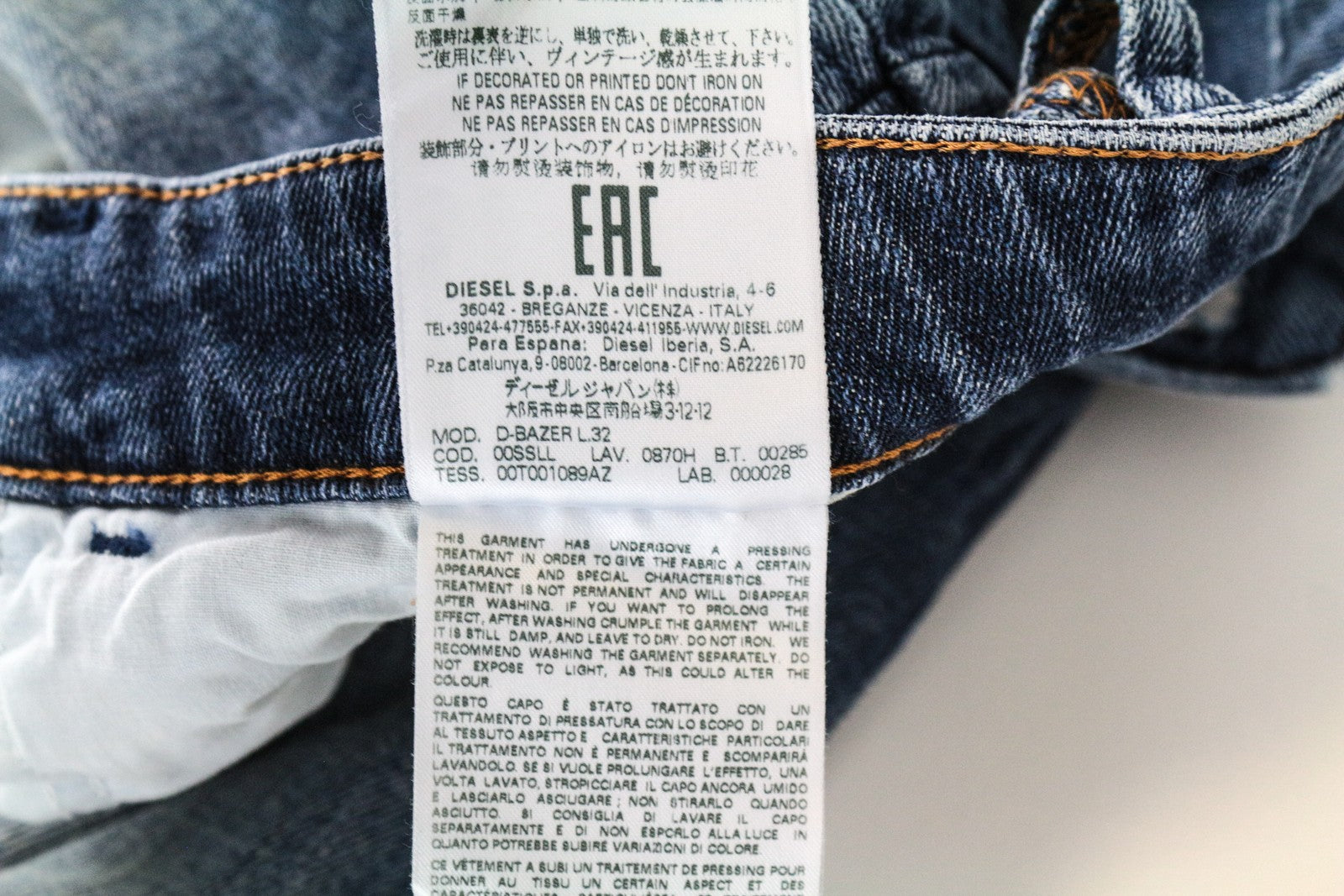 DIESEL D-Bazer 0870H vyriški W29/L32 siaurėjantys mėlyni tamprūs medvilniniai džinsai