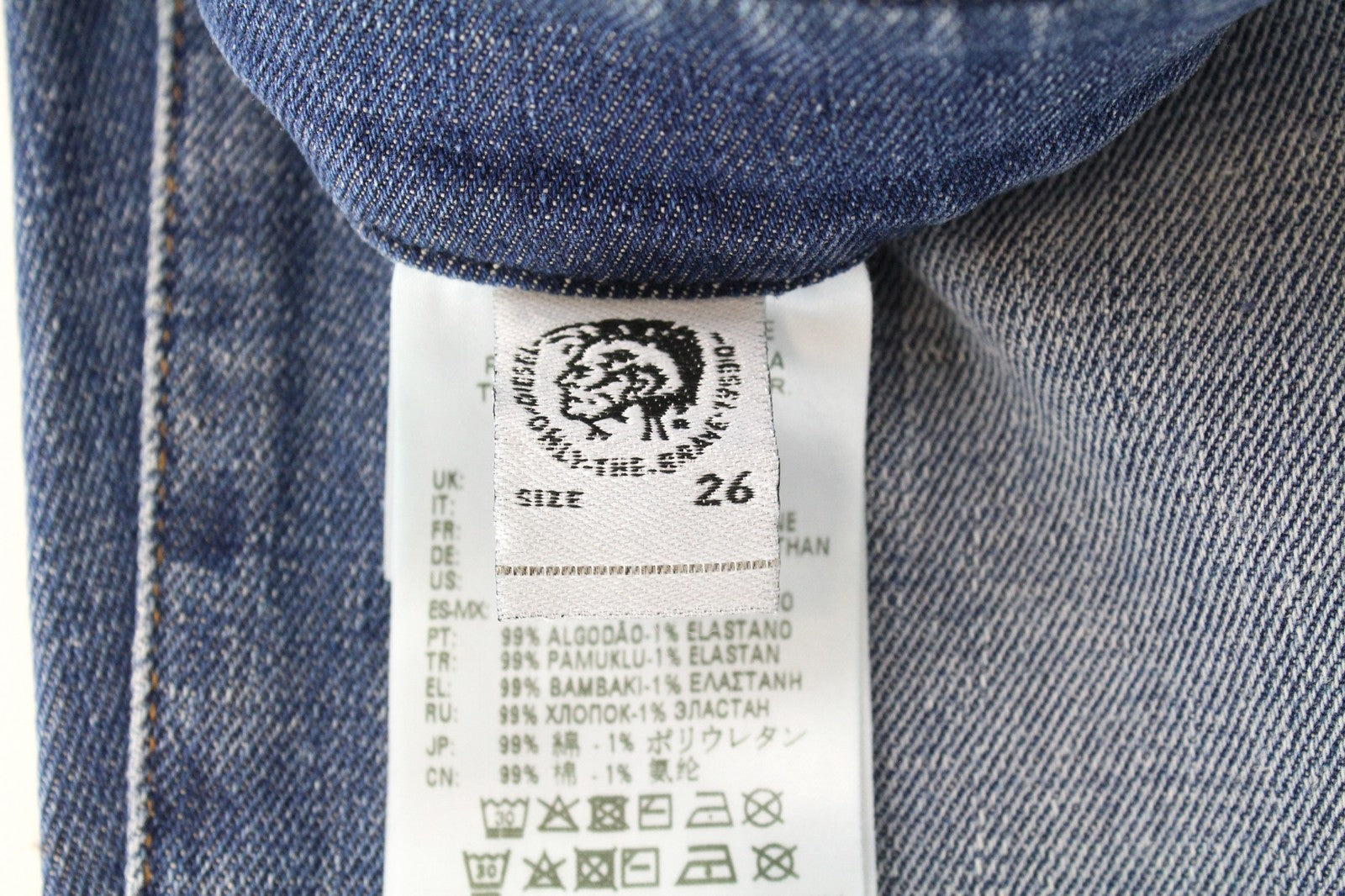 DIESEL D-Earlie 009HG W26/L32 moteriški džinsai su platėjančiomis iškirptėmis, aukštu liemeniu, išblukinti.