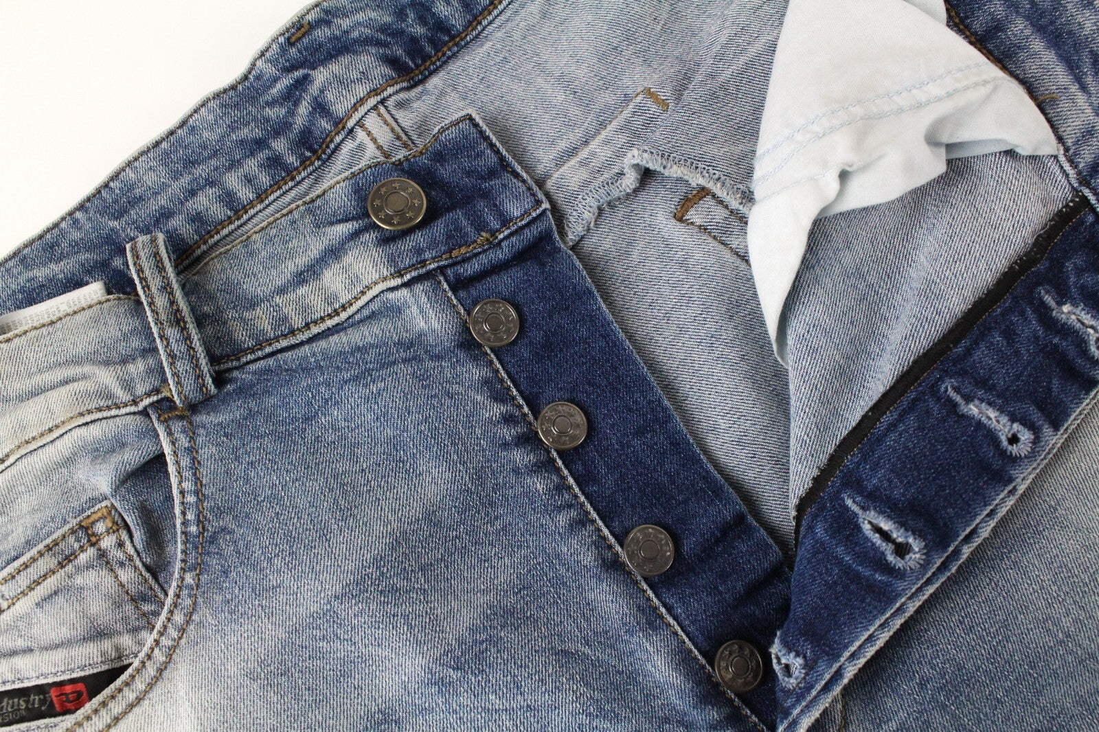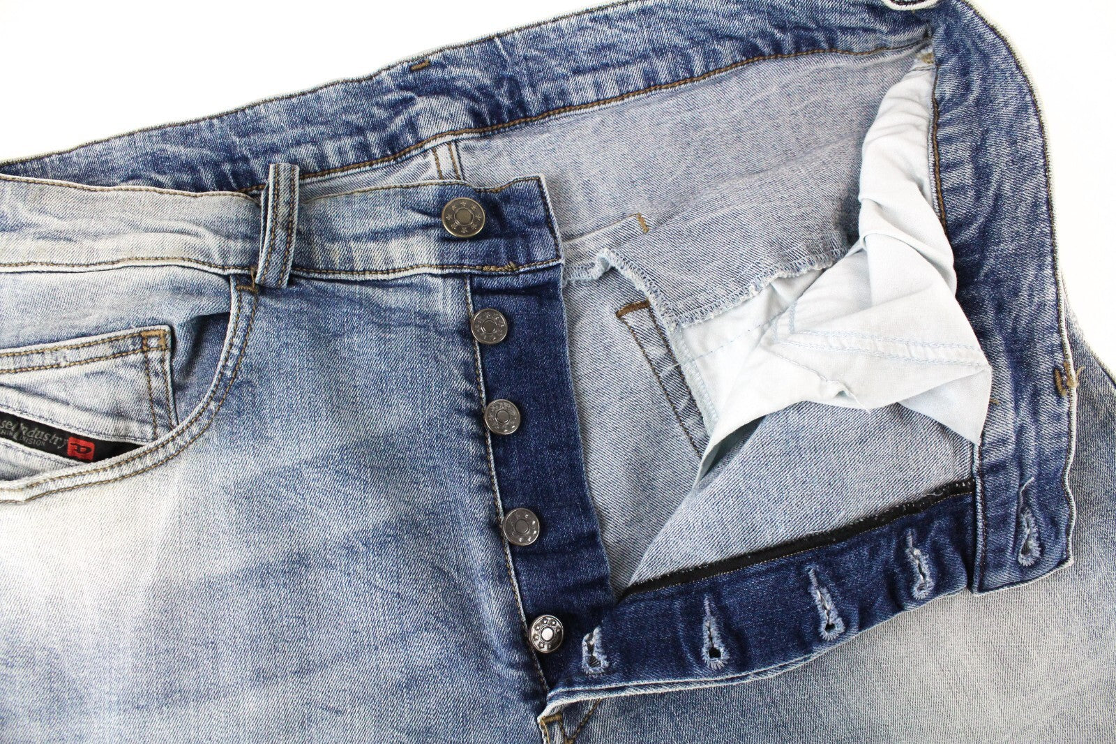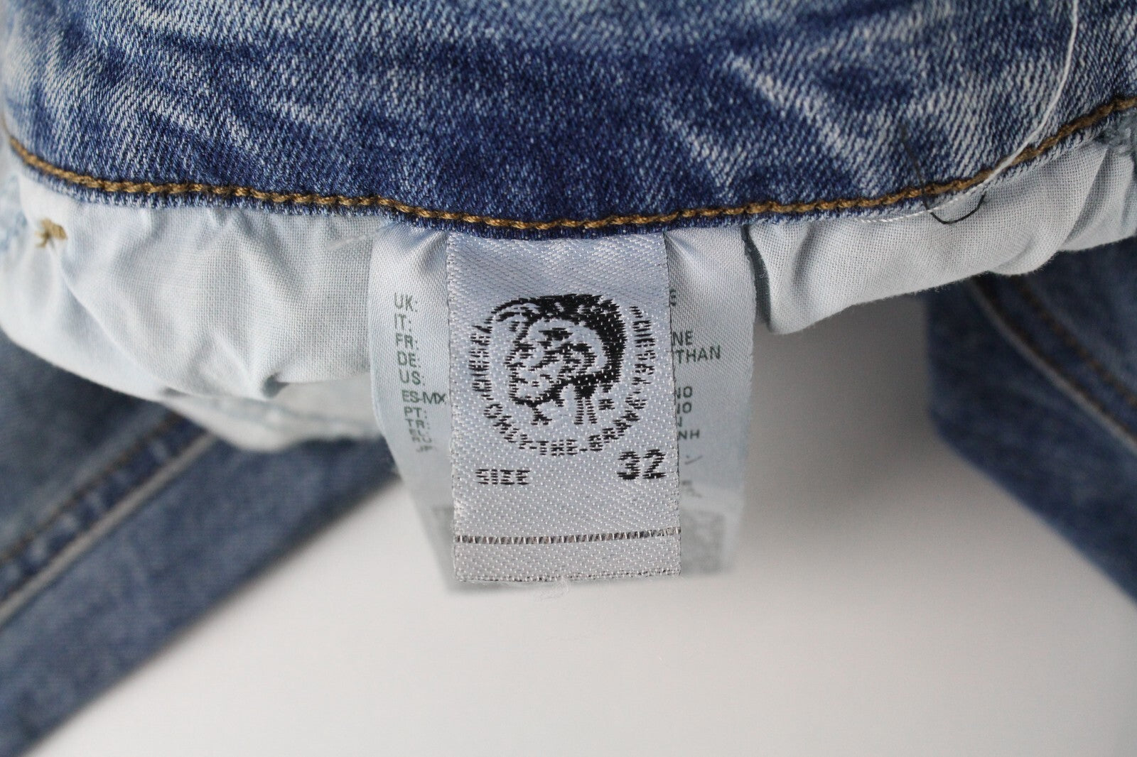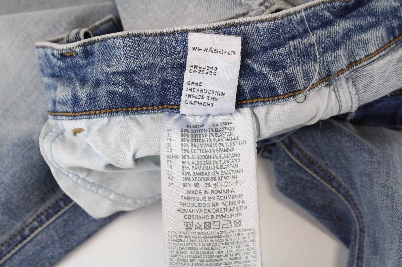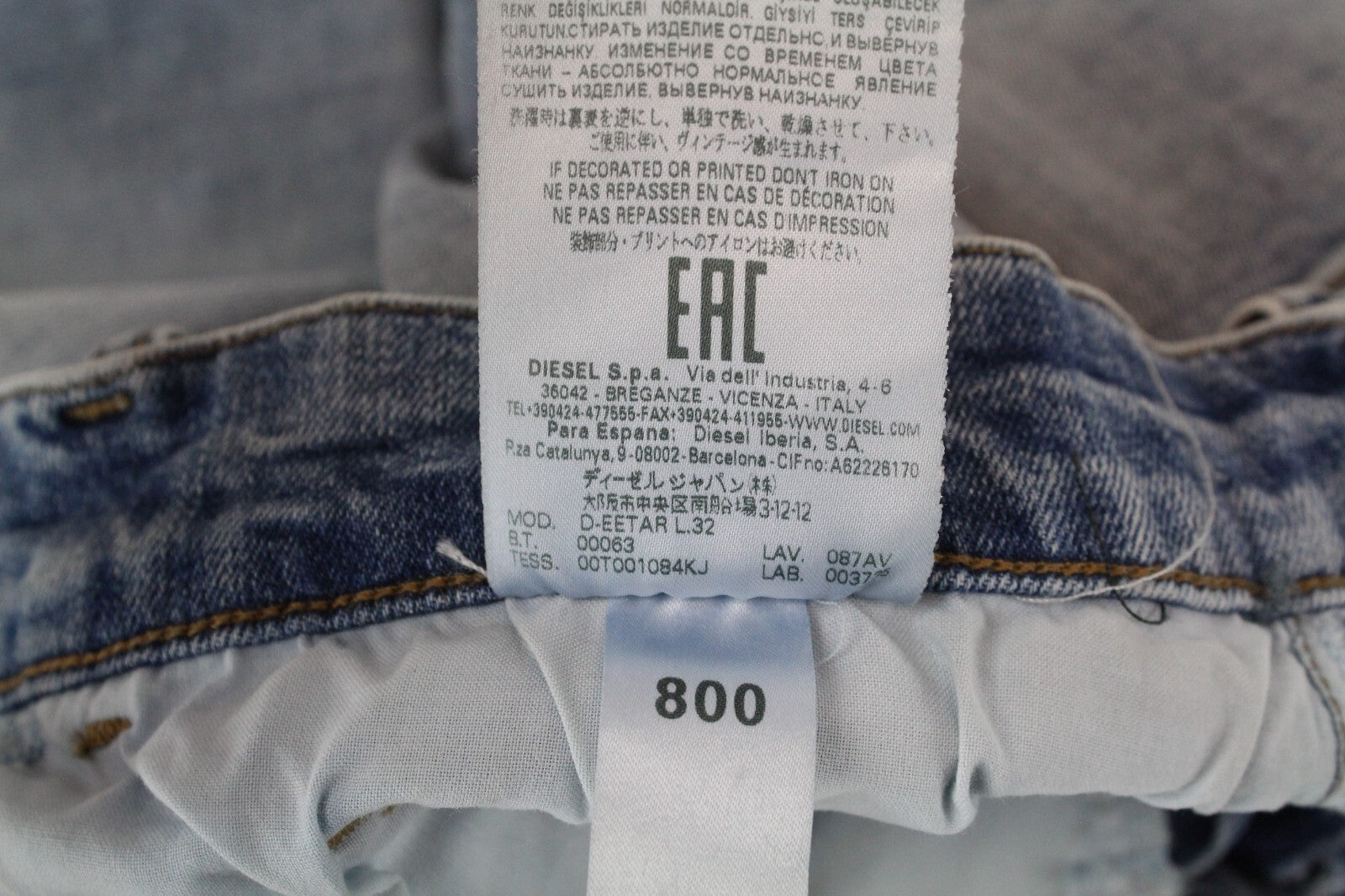 DIESEL D-Eetar 087AV vyriški džinsai W32/L32 morkų rašto, siaurėjantys, tamprūs, mėlyni, plėšyti