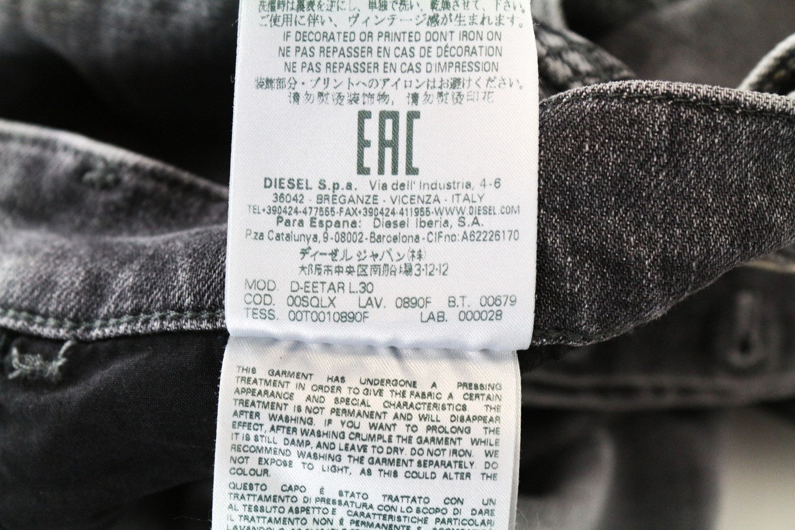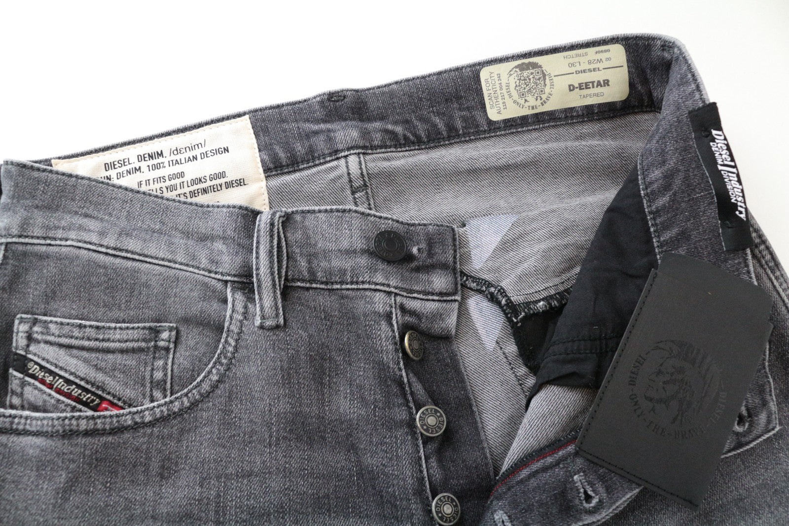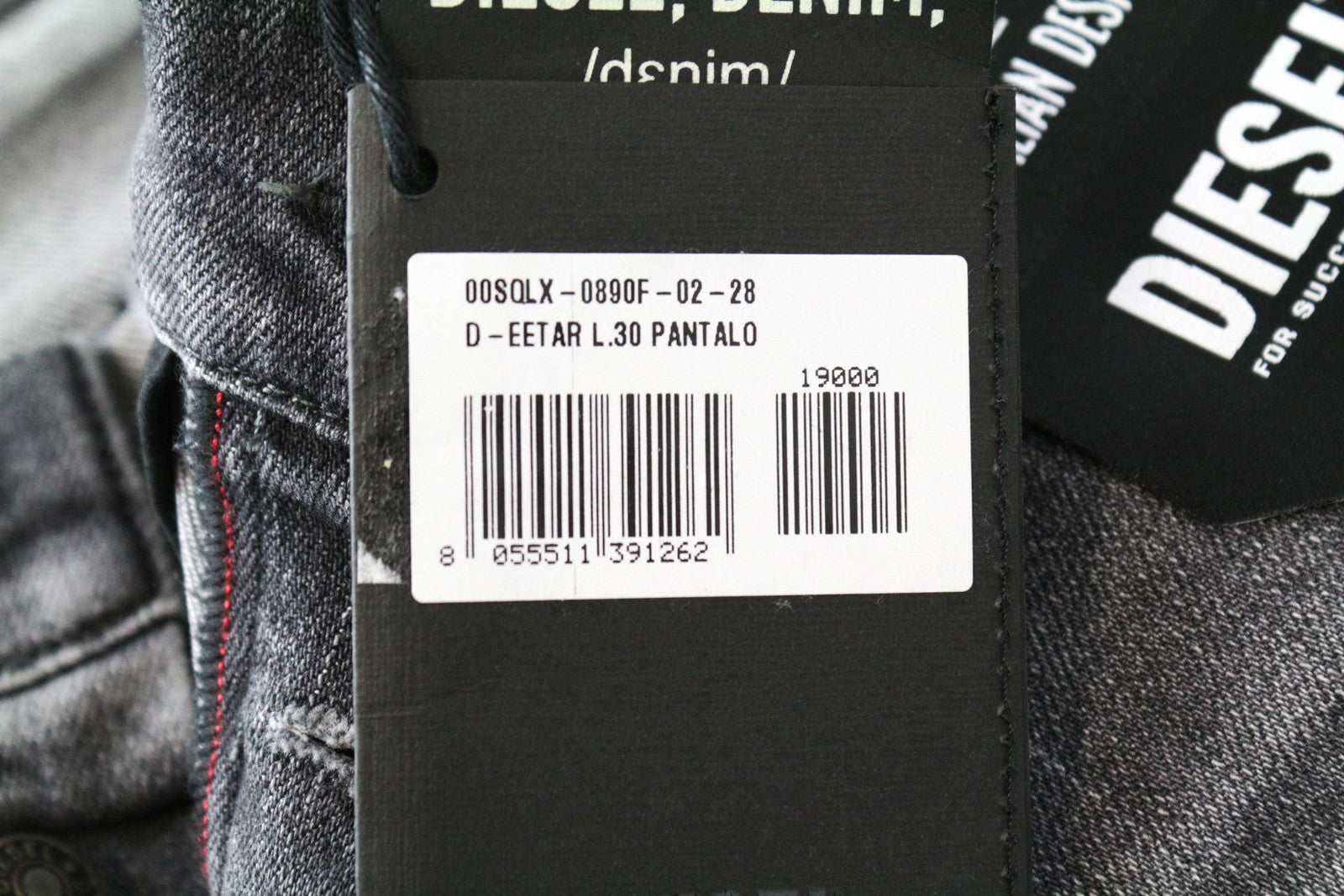 DIESEL D-Eetar 0890F pilki džinsai su dirbtiniais raštais, W28/L30, siaurėjančio kirpimo, medvilniniai, vyriški džinsai.