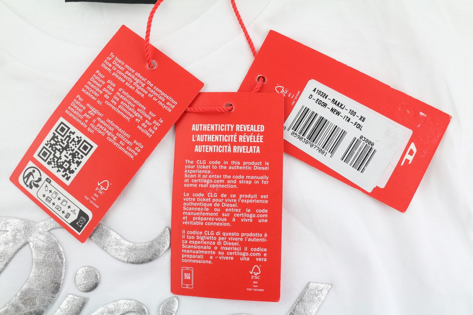 DIESEL D-Egor-New-Ita-Foil moteriška suknelė XS, balta, trumpomis rankovėmis, trikotažo stiliaus, laisvalaikio, mini