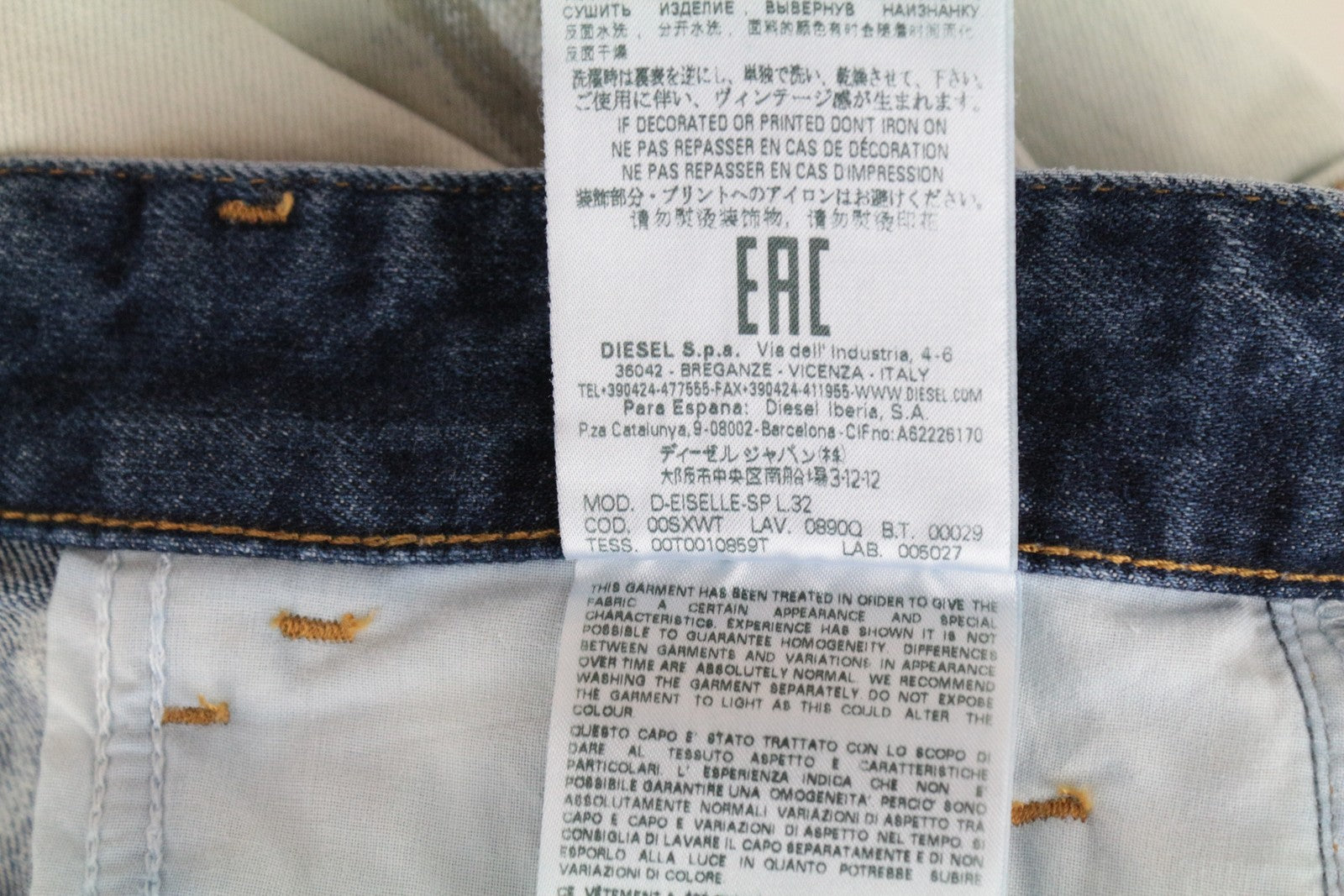 DIESEL D-Eiselle-SP 0890Q moteriški džinsai W27/L32 tiesūs balintos mėlynos medvilnės džinsai