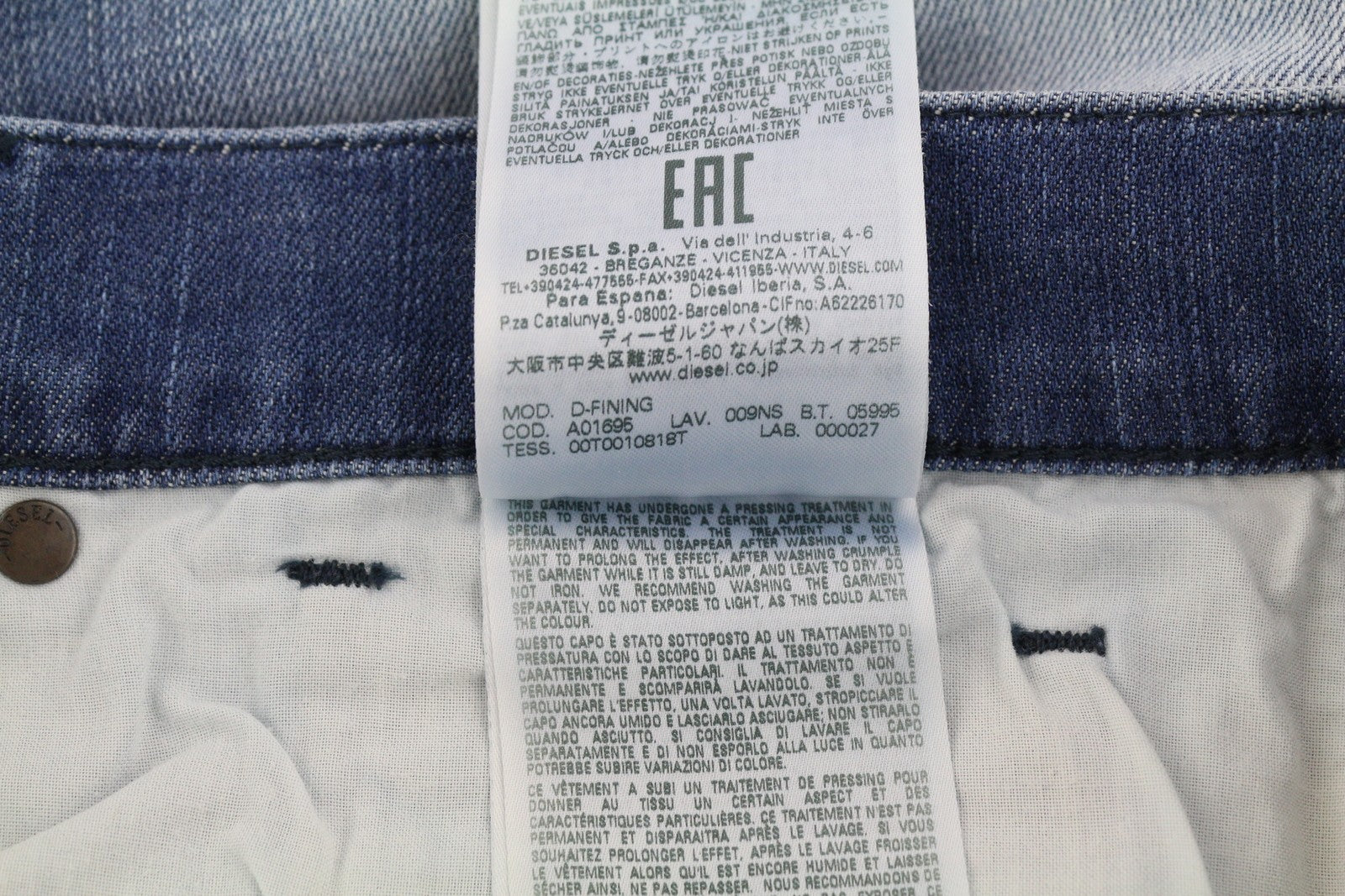 DIESEL D-Fining 009NS vyriški džinsai W31/L32, siaurėjantys, tamprūs, skalbti, su sagomis