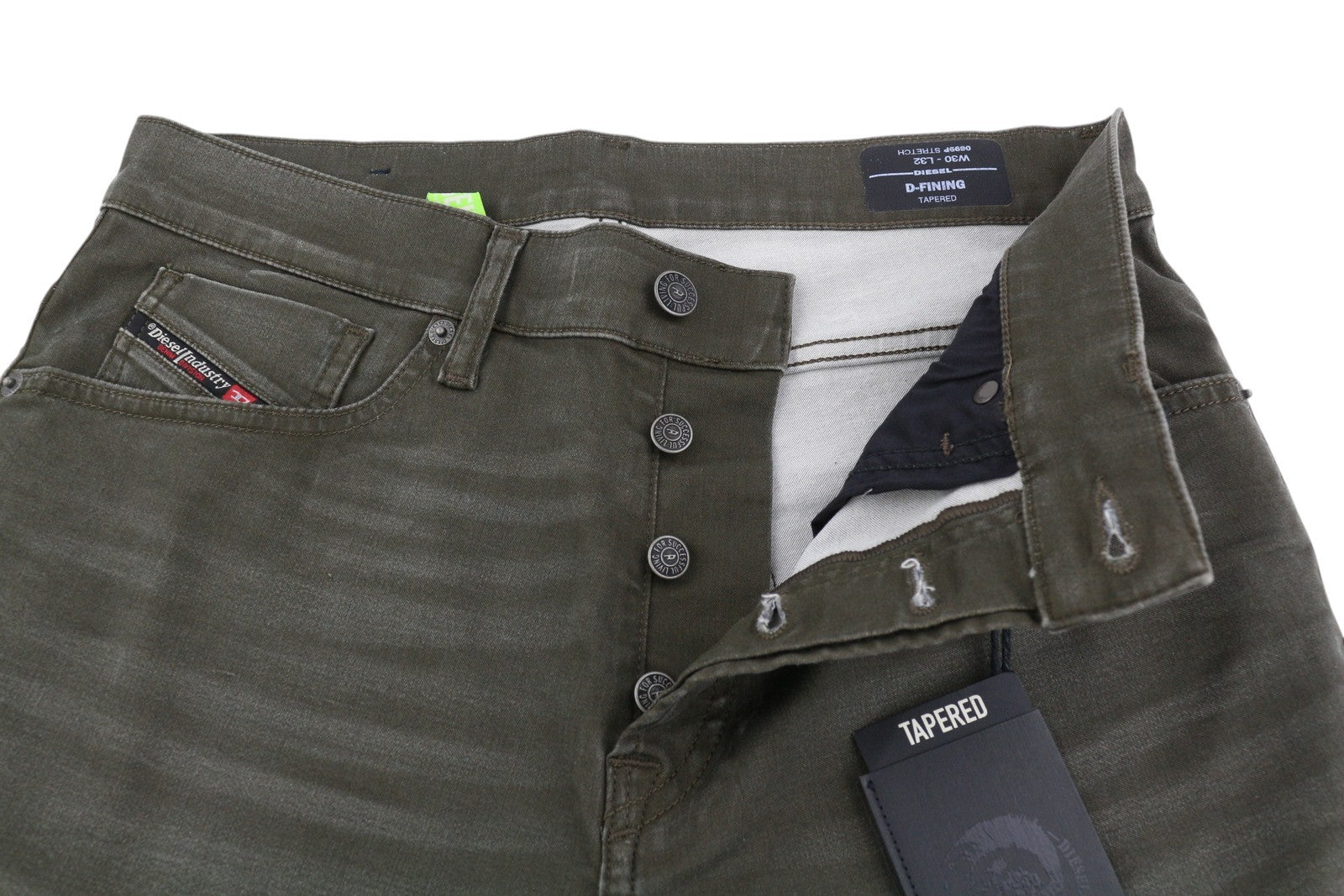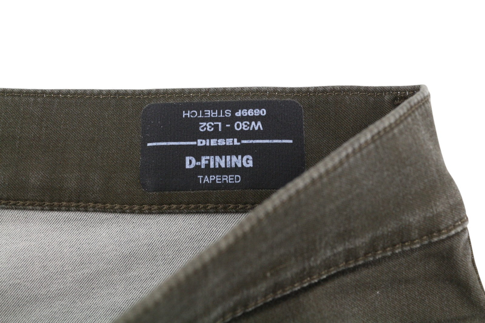 DIESEL D-Fining 0699P vyriški džinsai W30/L32 siaurėjantys tamprūs skalbti tamsiai rudi