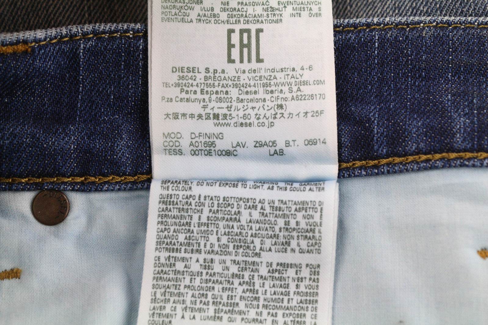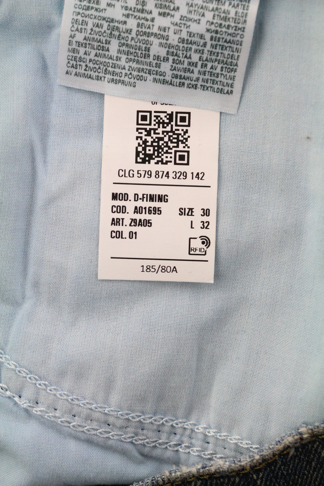 DIESEL D-Fining Z9A05 vyriški džinsai W30/L32 siaurėjantys, tamprūs, skalbtos mėlynos spalvos, rekomenduojama kaina – 225 €