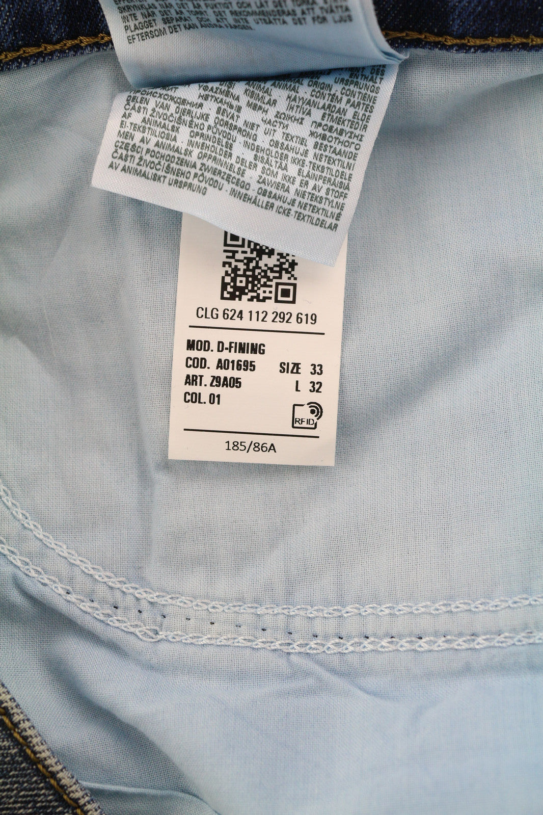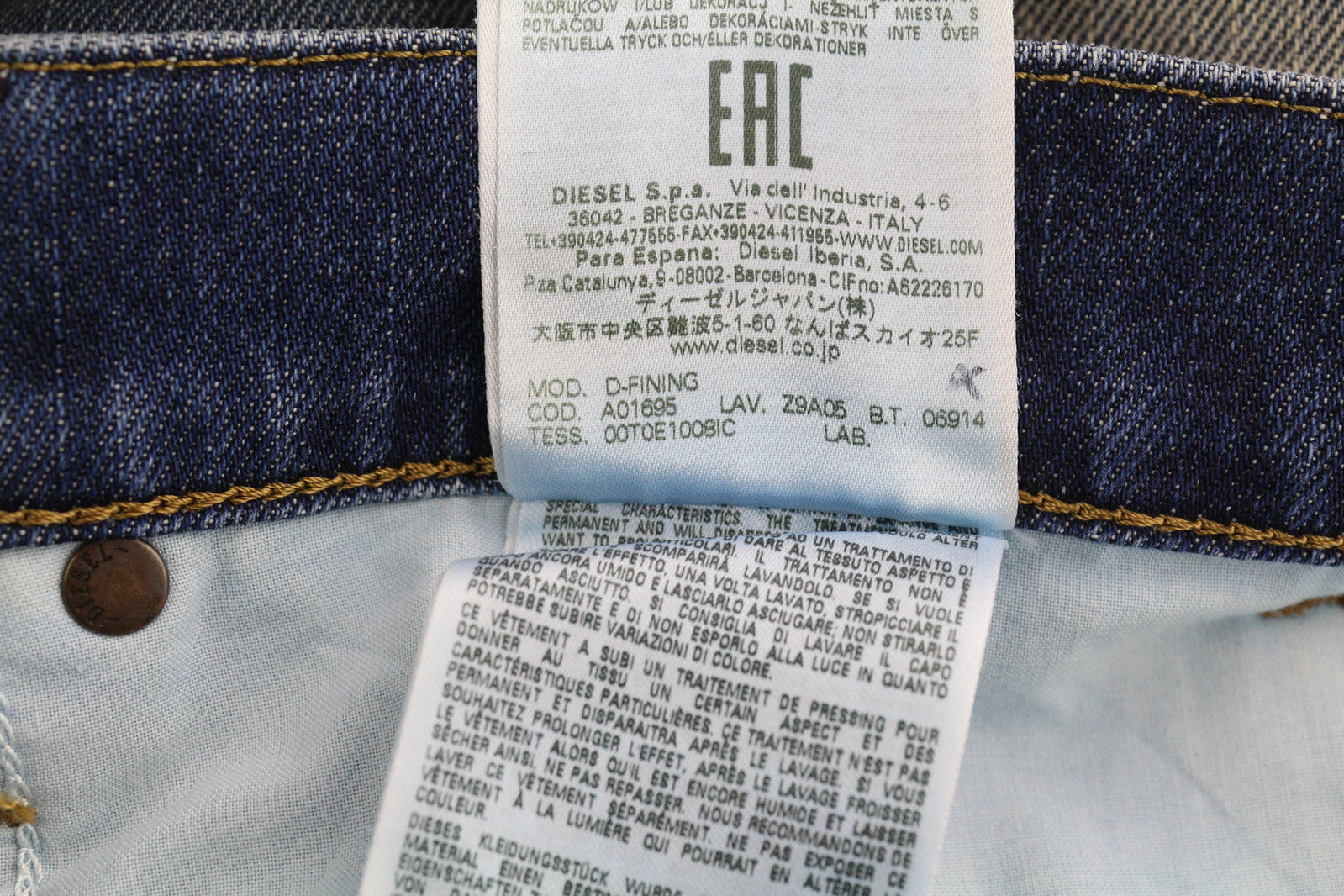 DIESEL D-Fining Z9A05 vyriški džinsai W33/L32 siaurėjantys, tamprūs, skalbtos mėlynos spalvos, rekomenduojama kaina – 225 €