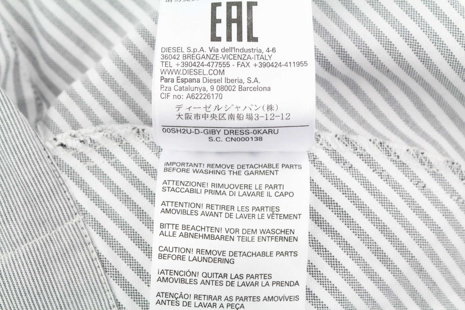 DIESEL D-Giby moteriška suknelė XS pilka dryžuota be rankovių su platėjančiu logotipu RRP 150 €