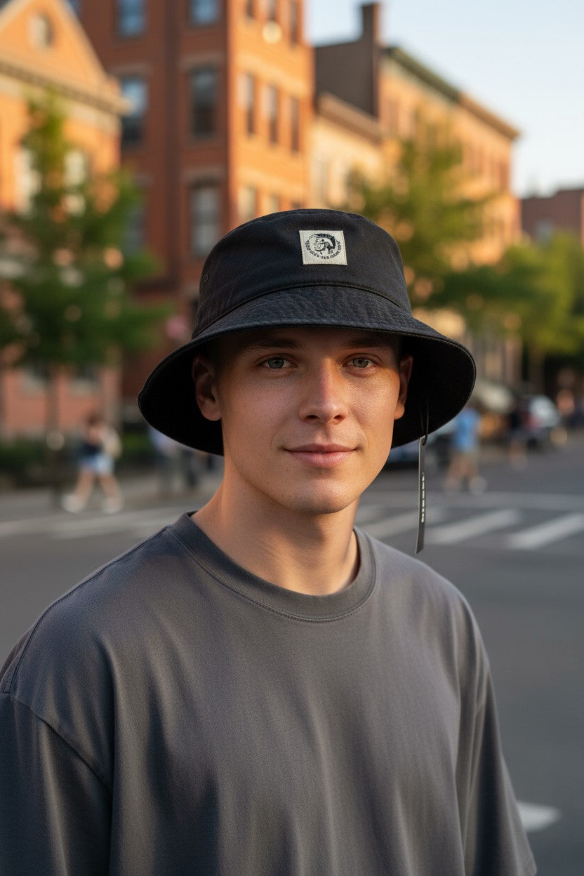 DIESEL D-Indig vyriška kepurė OS Black Bucket All Seasons Casual Patch Dark RRP 100 €