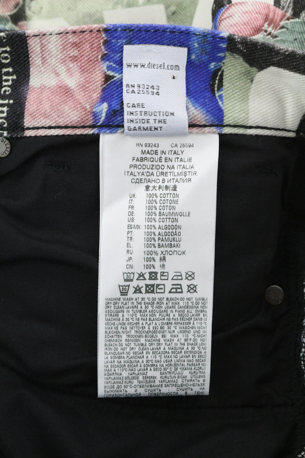 DIESEL D-Kras 009VB vyriški džinsai W32/L32 Slim Fit su raštuotais sagomis ir logotipu, rekomenduojama kaina – 295 €