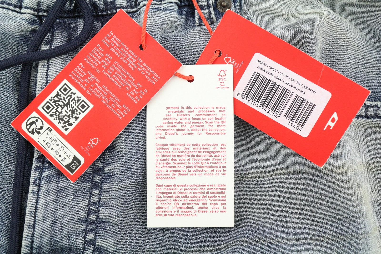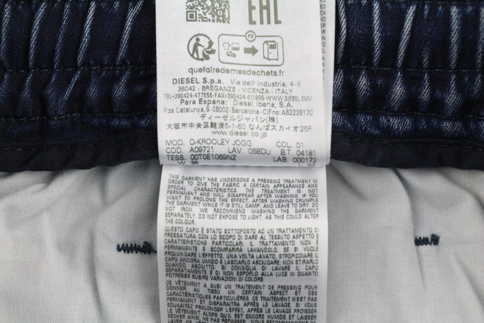 DIESEL D-Krooley Jogg 068DU vyriški džinsai W36/L32 su raišteliu juosmenyje, mėlyni, rekomenduojama kaina – 295 €