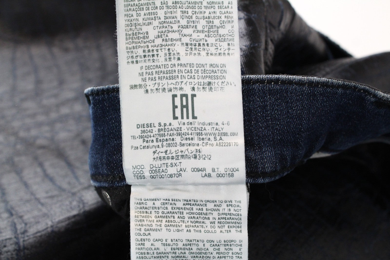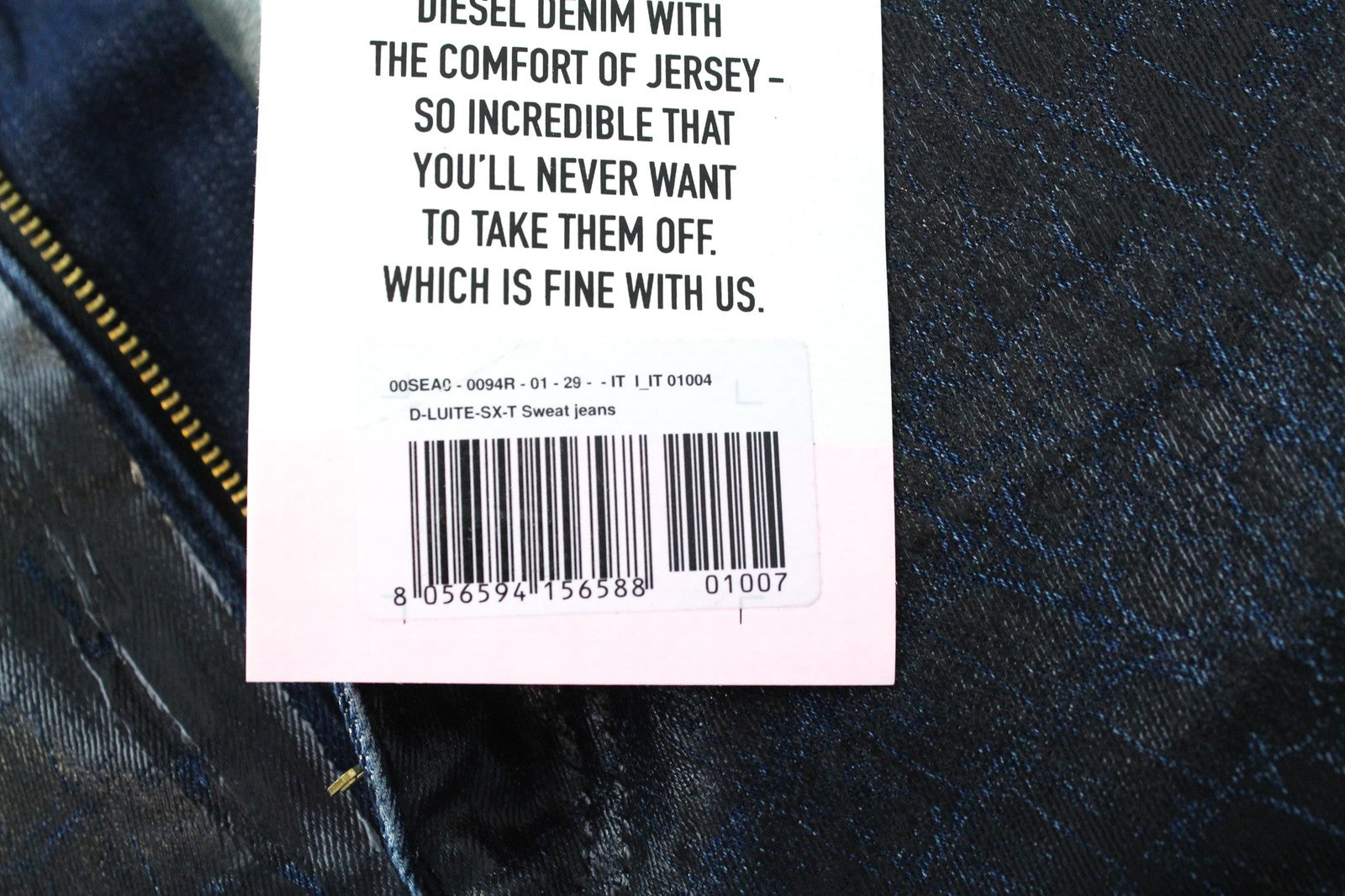 DIESEL D-Luite-SX-T 0094R W29 moteriški džinsai su gyvūnų raštu ir platėjančiomis sportinėmis kelnėmis, dengti gobtuvu.