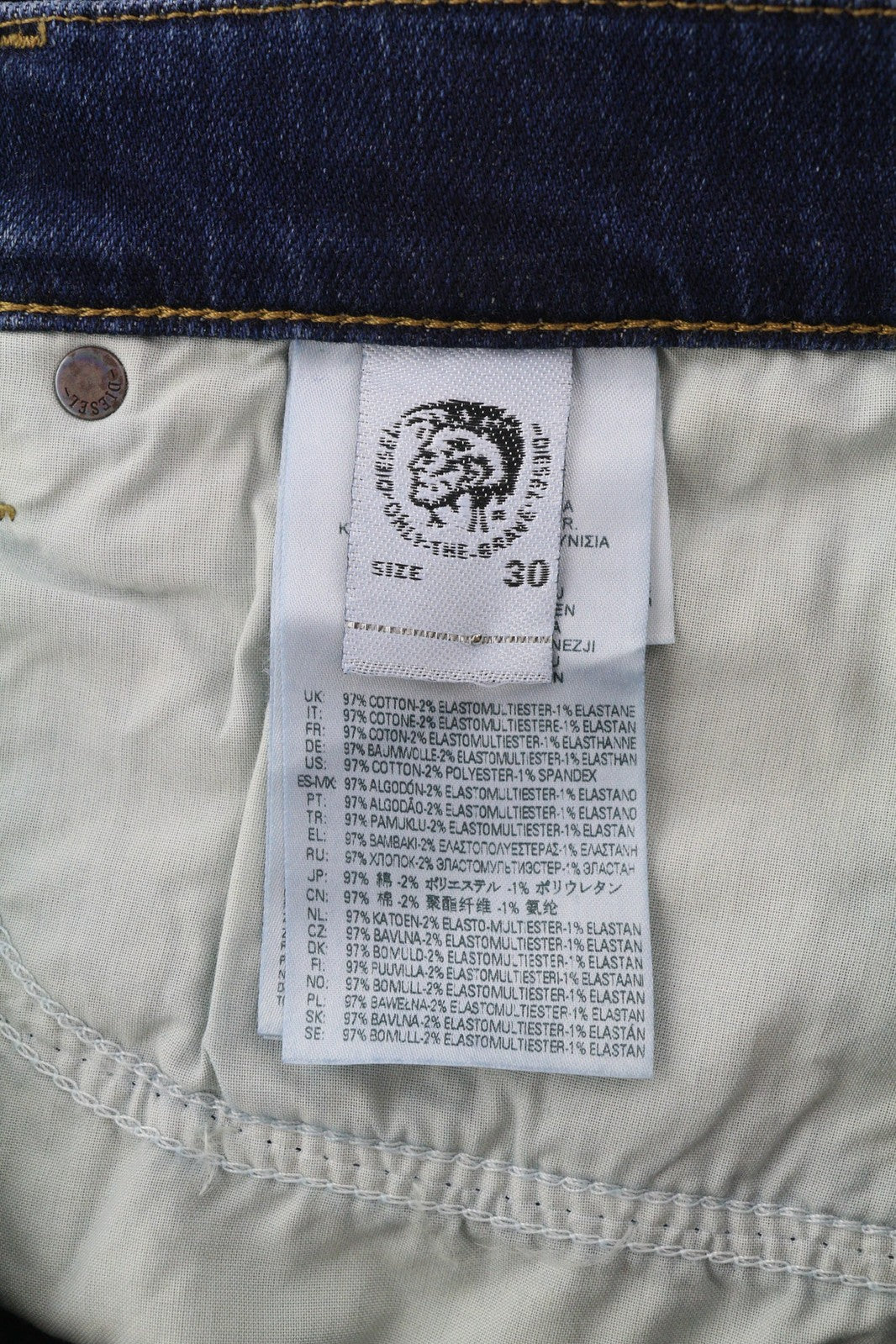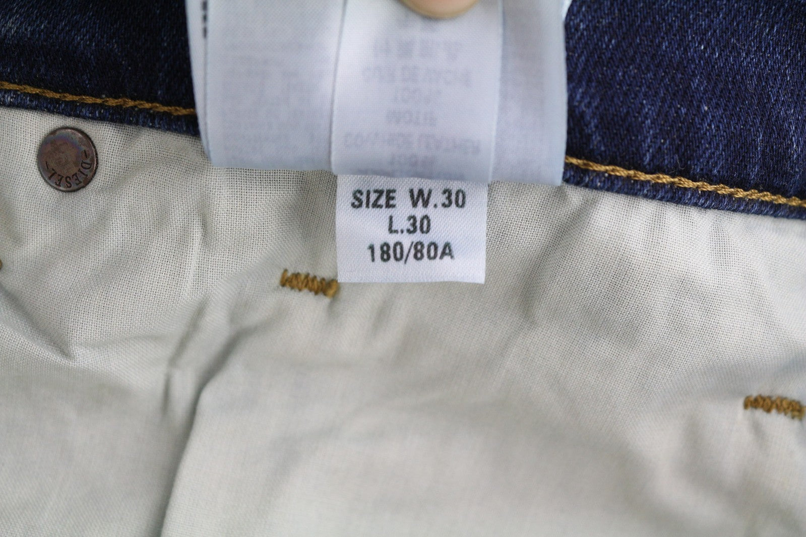 DIESEL D-Mihtry 009ML vyriški džinsai W30/L30 tiesaus kirpimo, tamprūs, skalbto mėlyno logotipo imitacija