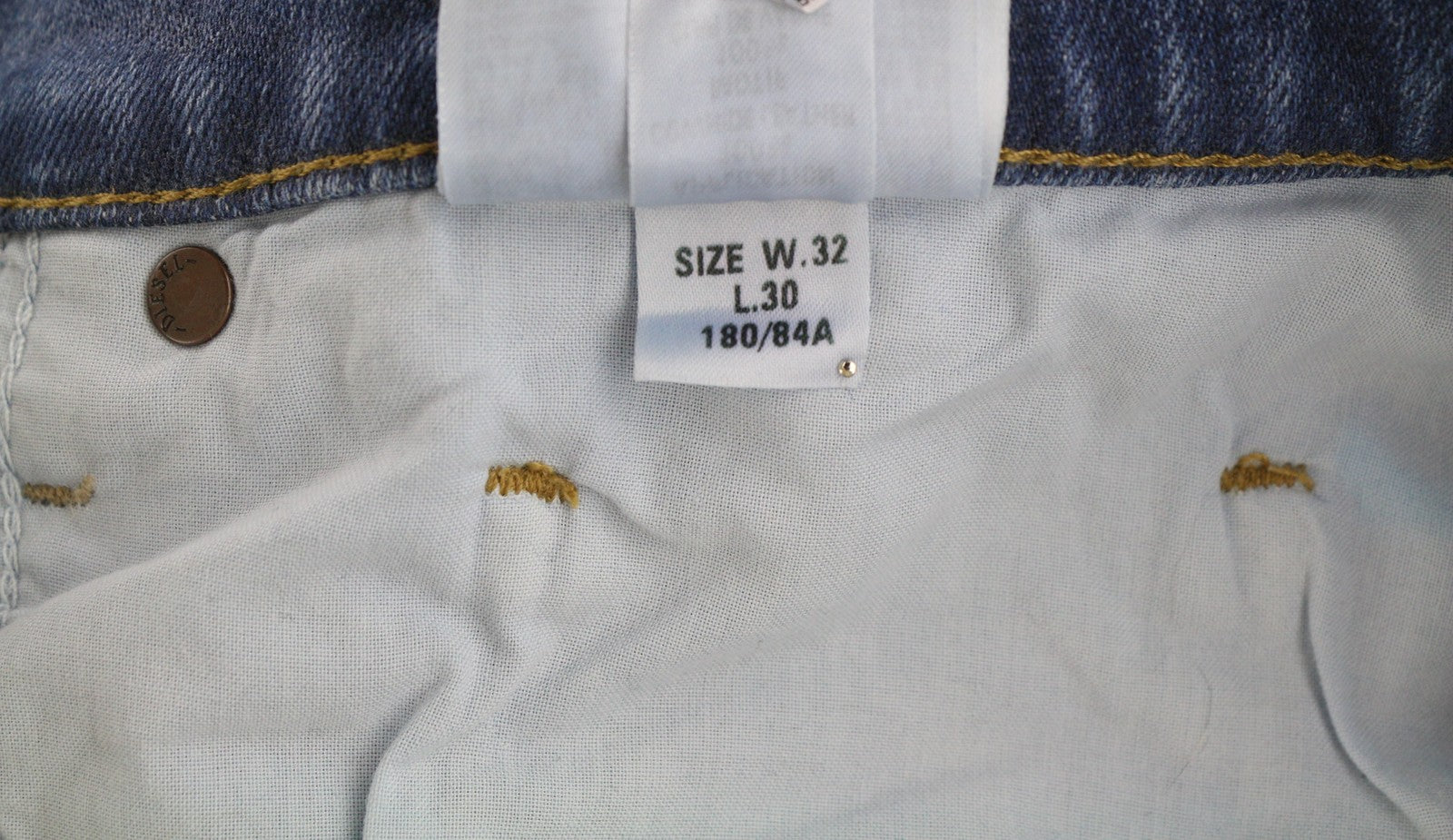 DIESEL D-Mihtry 009NF vyriški džinsai W32/L30 mėlyni, tiesūs, skalbti, tamprūs su sagomis
