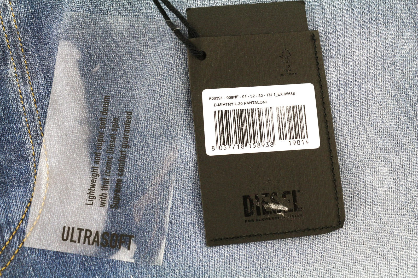 DIESEL D-Mihtry 009NF Mens Jeans W32/L30 Blue Washed Straight Stretch Buttoned