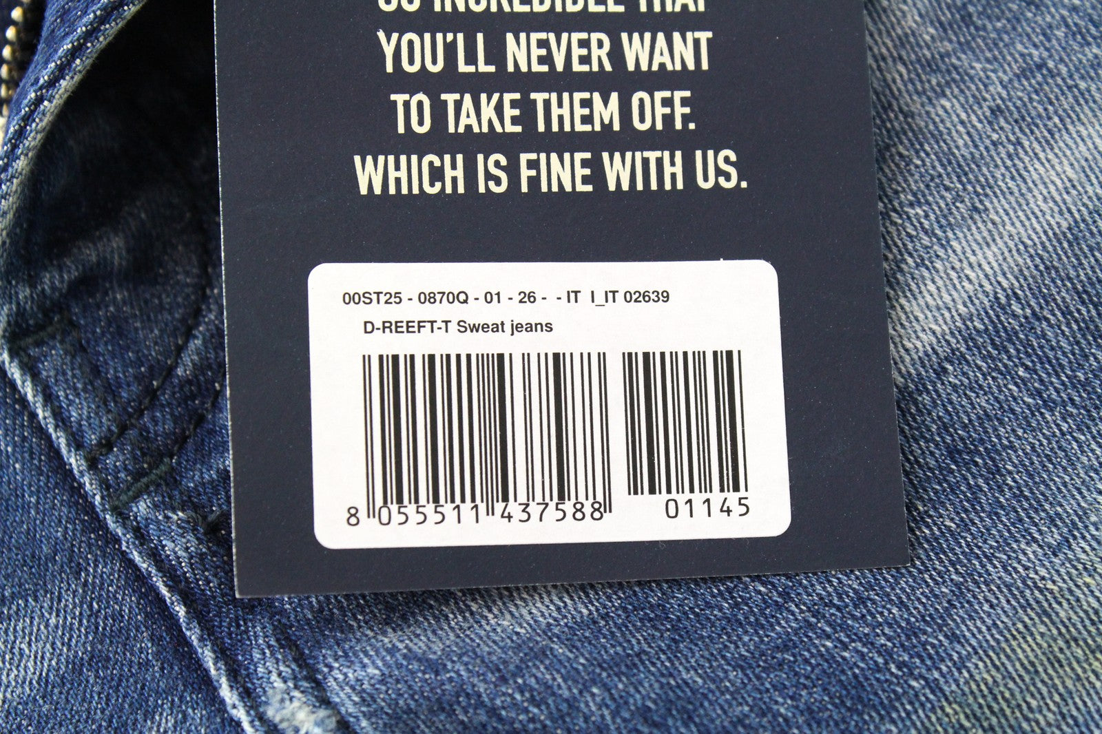 DIESEL D-Reeft-T 0870O W26 vyriški džinsai, aptempti, berniukiški, sportiniai, su dėmėmis.