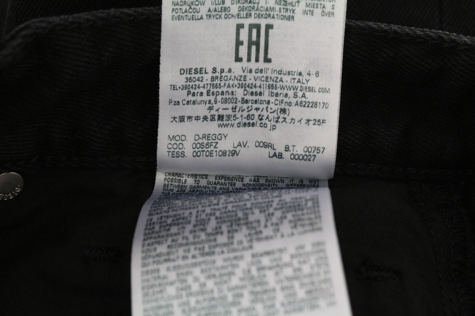 DIESEL D-Reggy 009RL moteriški džinsai W28/L30 juodi tiesūs užtrauktukai, vidutinio liemens