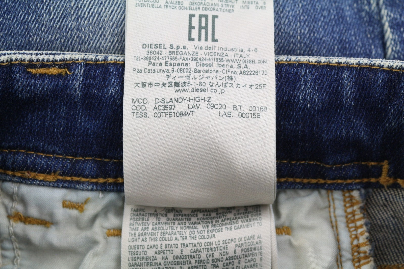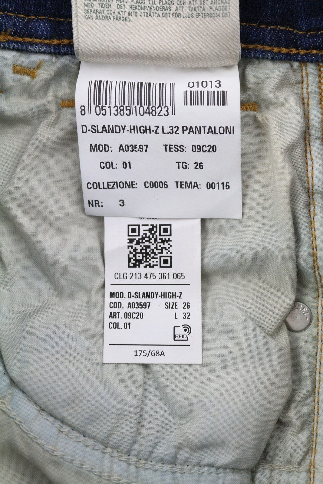 DIESEL D-Slandy-High-Z 09C20 moteriški džinsai W26/L32 aptempti, skalbti, rekomenduojama mažmeninė kaina – 160 €, mėlyni