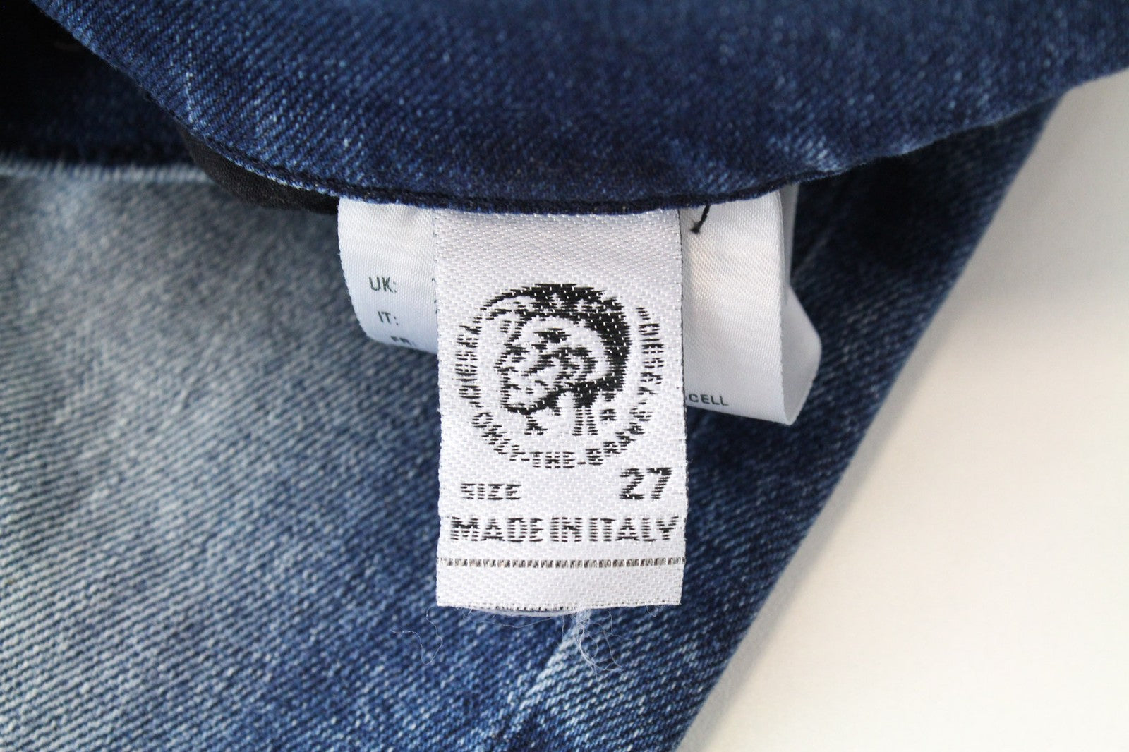 DIESEL D-Strukt 081AQ vyriški mėlyni džinsai su dirbtiniu gobtuvu, W27/L32 berniukams, siaurėjantys