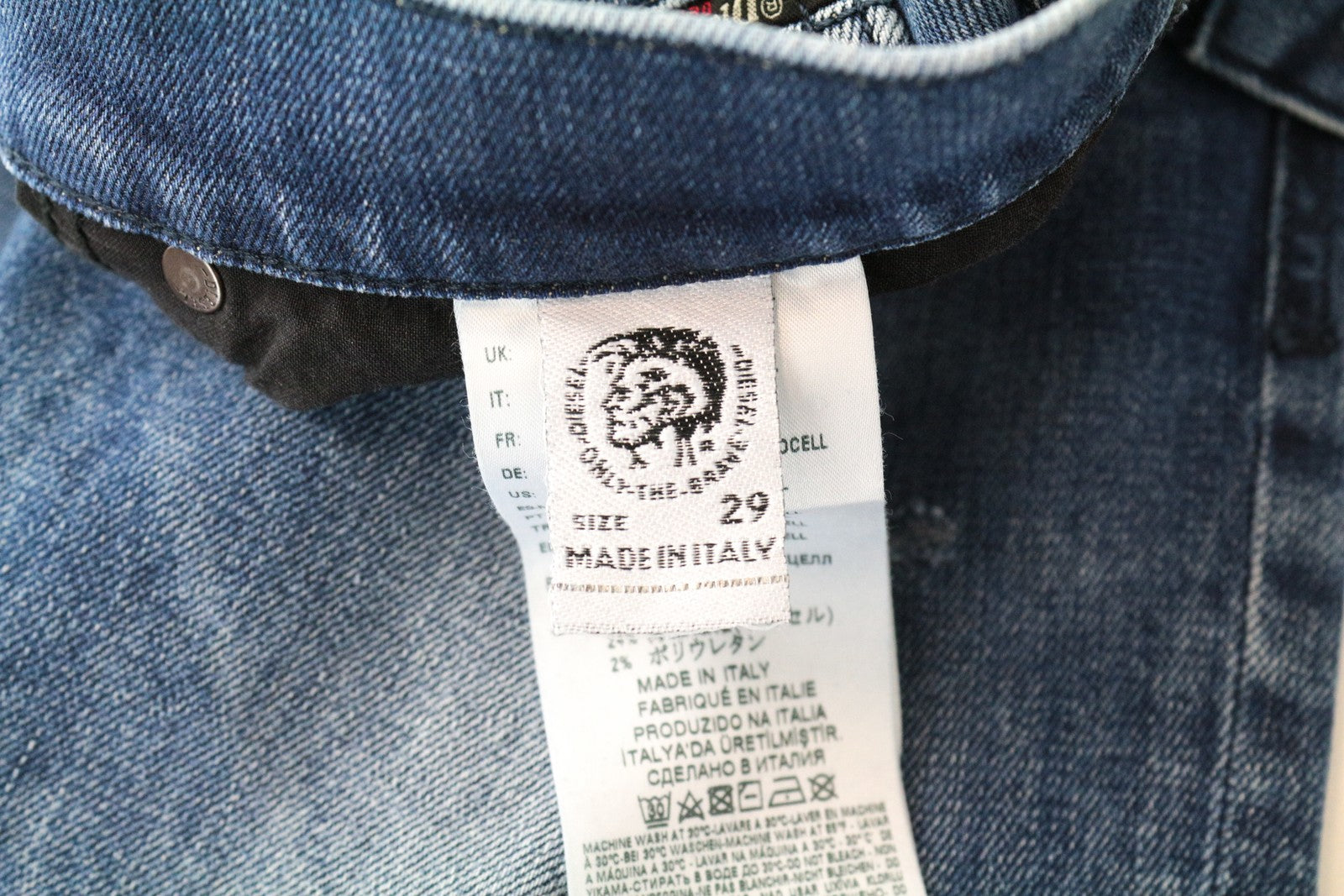 DIESEL D-Strukt 081AQ W29/L30 siaurėjančio kirpimo mėlyni medvilniniai tamprūs džinsai vyrams, skalbimui
