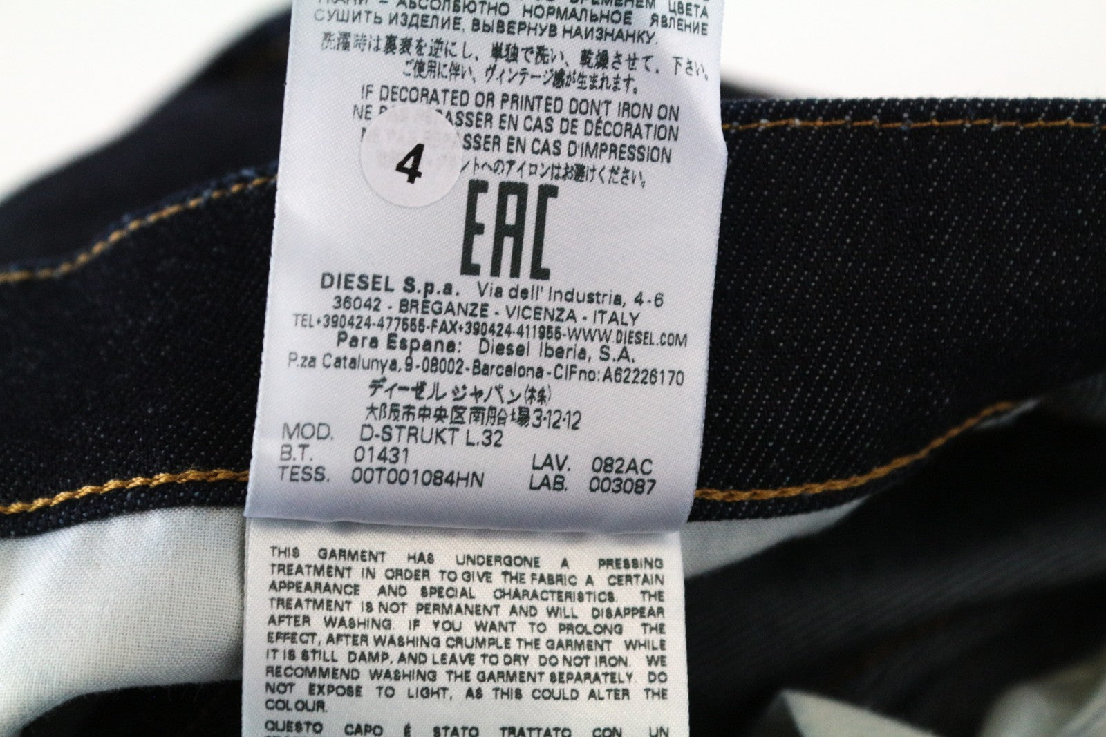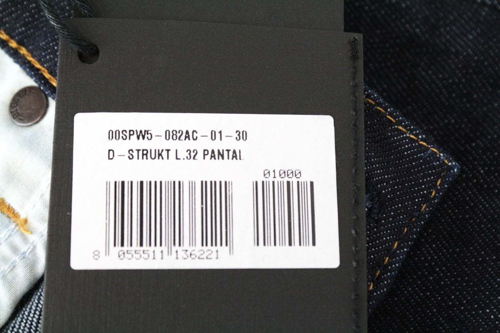 DIESEL D-Strukt 082AC W30/L32 vyriški siaurėjantys džinsai tamsiai mėlyni, tamprūs medvilniniai džinsai