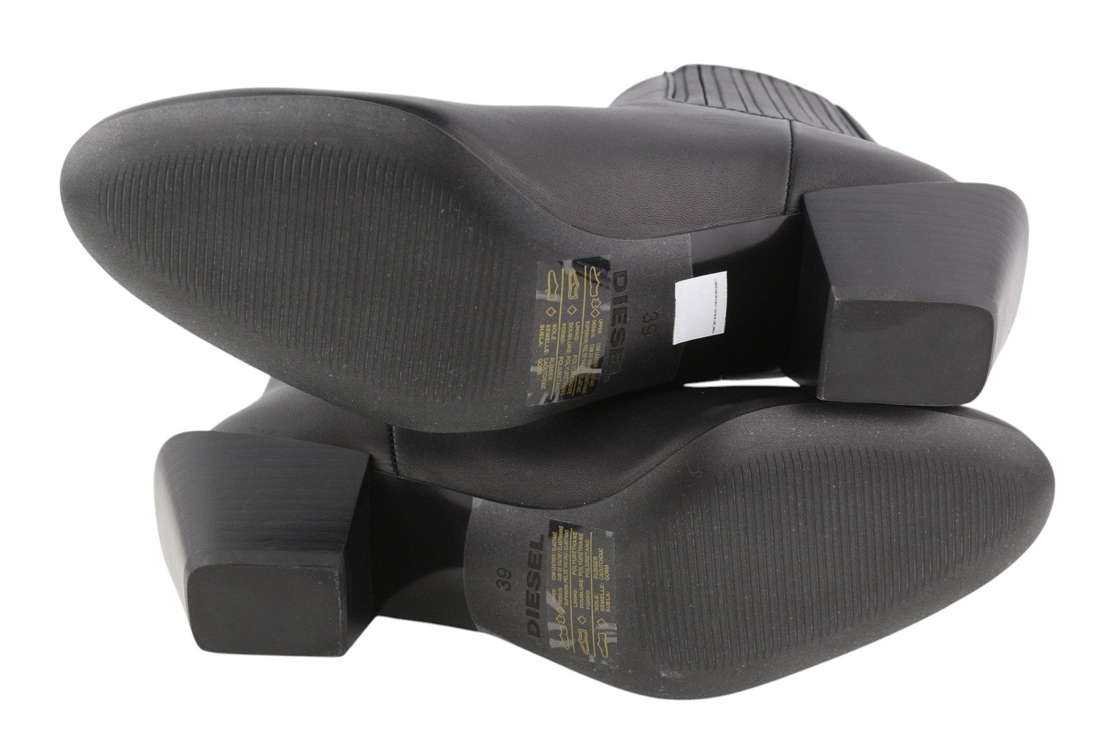 DIESEL D-Texanne CH moteriški aulinukai, juodi, odiniai, 39 dydžio, migdolų nosis, rekomenduojama kaina – 290 €, kubietiškas kulnas.
