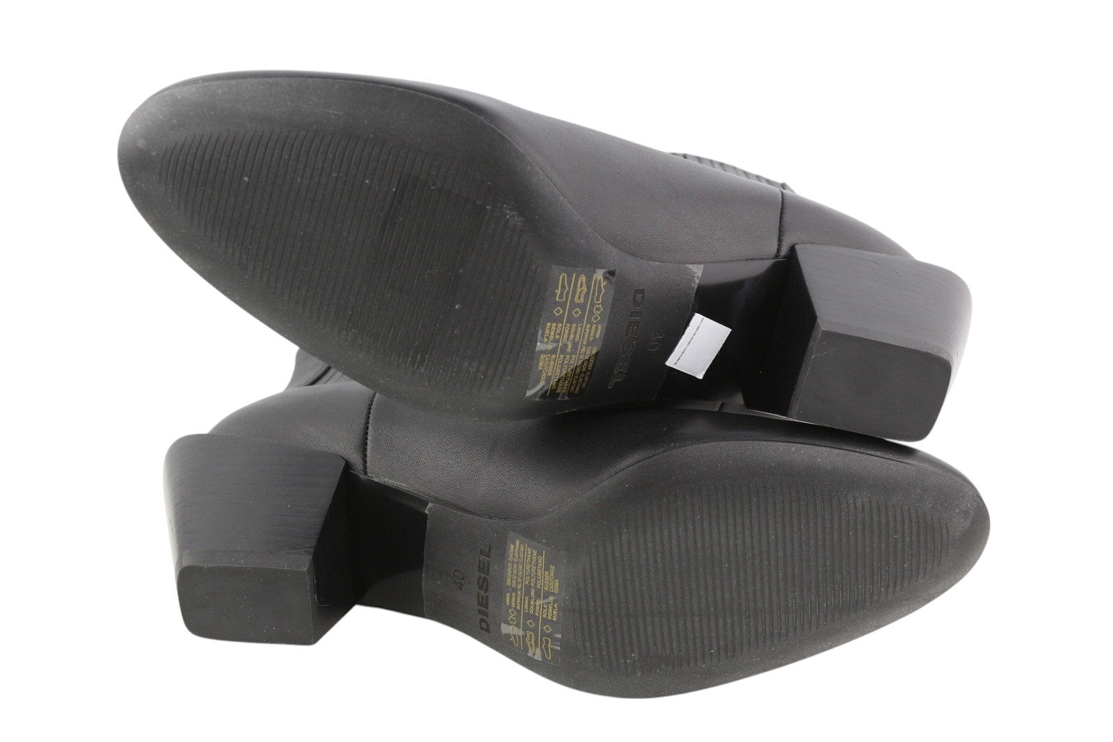 DIESEL D-Texanne CH moteriški aulinukai, juodi, odiniai, migdolų nosis, 40 €, kubietiškas kulnas – 290 €