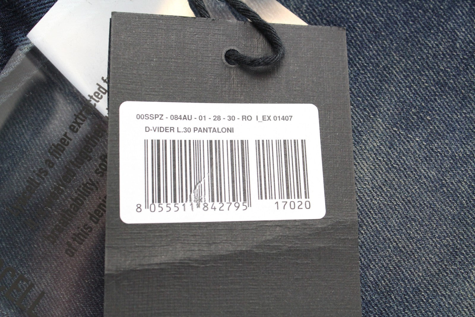 DIESEL D-Vider 084AU vyriški džinsai W28/L30 morkų kirpimo tamprūs mėlyni 5P