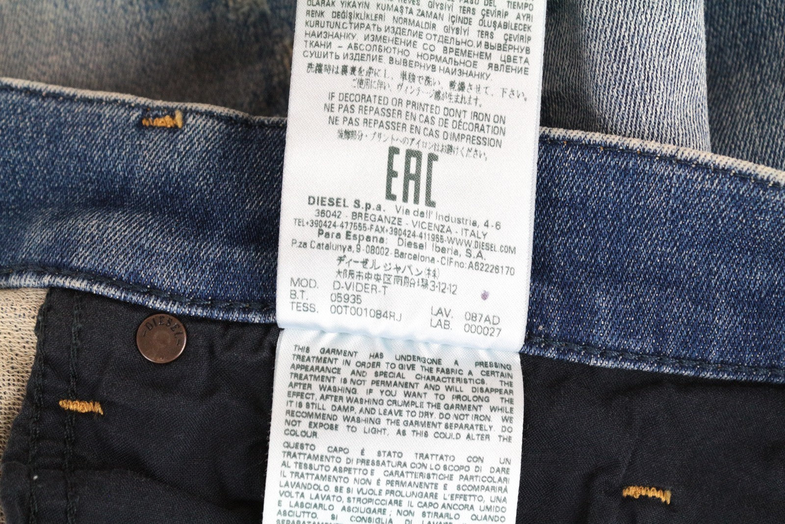 DIESEL D-Vider-T 087AD vyriški džinsai W28 morkų kirpimo medvilniniai tamprūs mėlyni