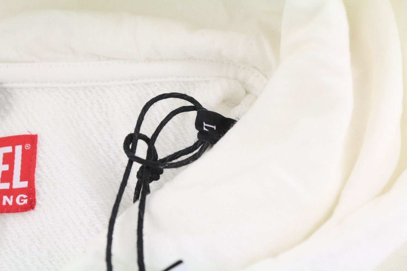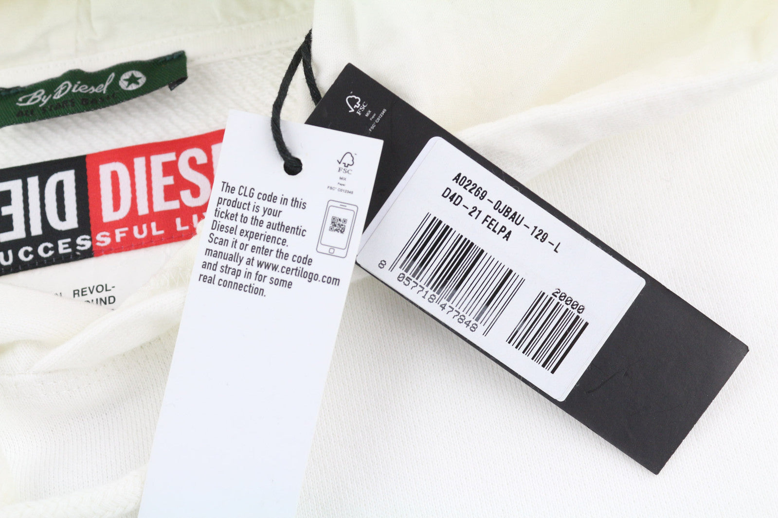 DIESEL D4D-21 vyriškas džemperis su gobtuvu L dydžio, baltas, medvilninis megztinis su kengūros kišene ir gobtuvu. RMK 175 €