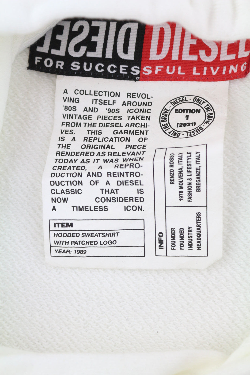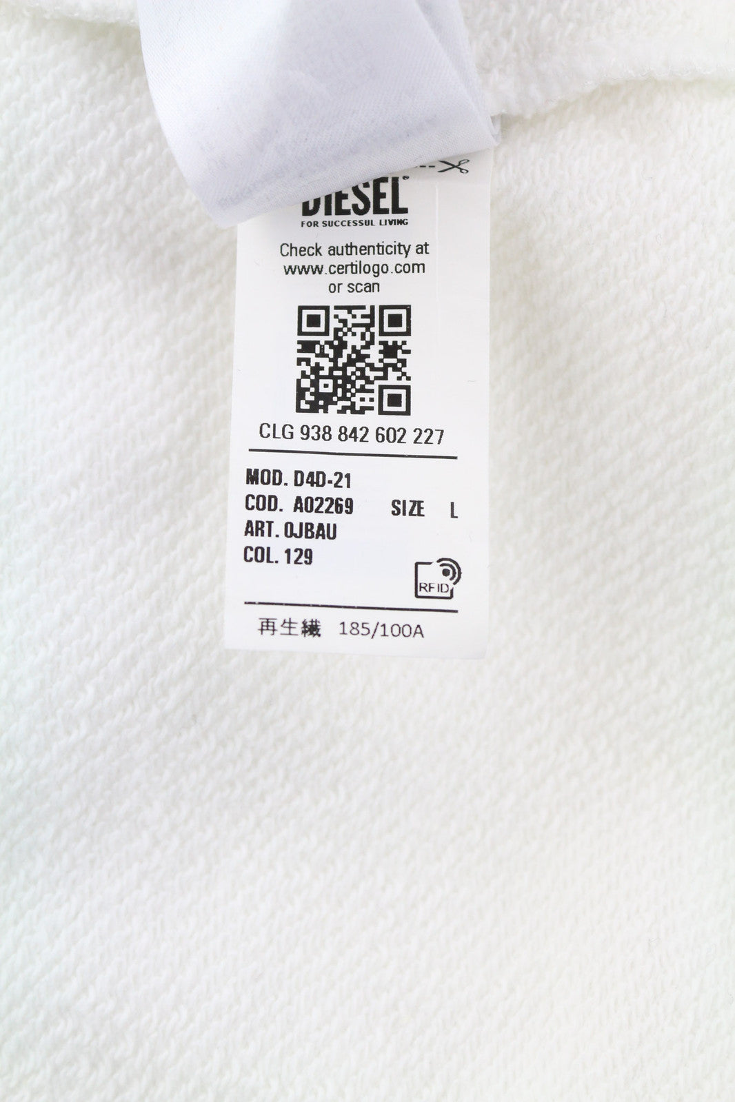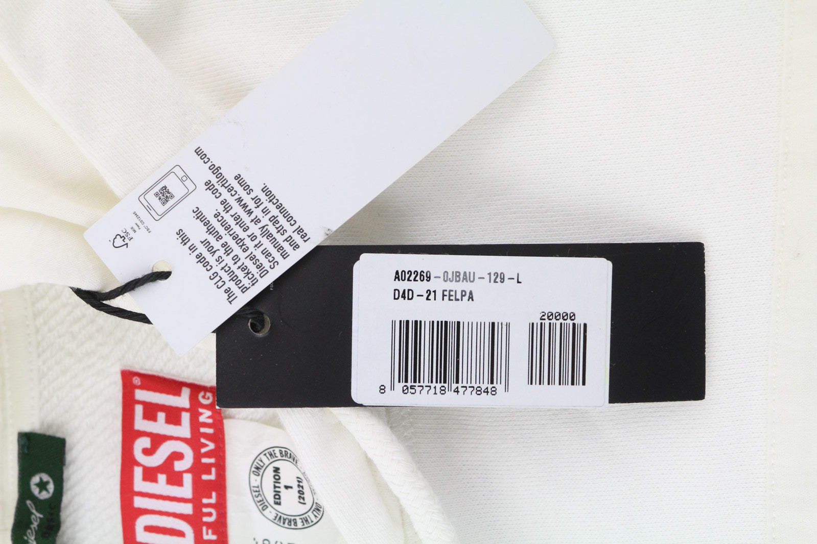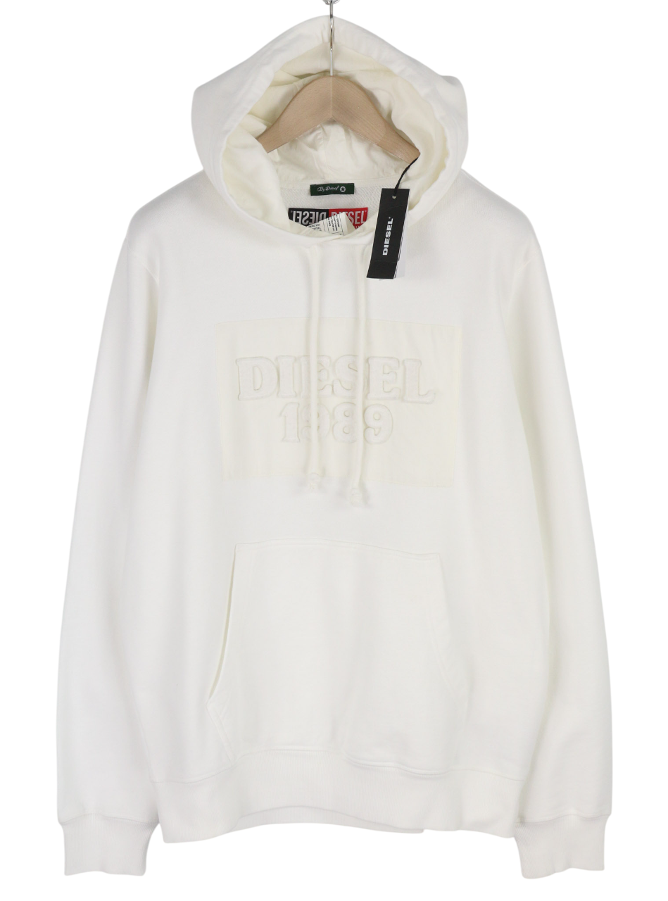 DIESEL D4D-21 vyriškas džemperis su gobtuvu L dydžio, baltas, medvilninis megztinis su kengūros kišene ir gobtuvu. RMK 175 €