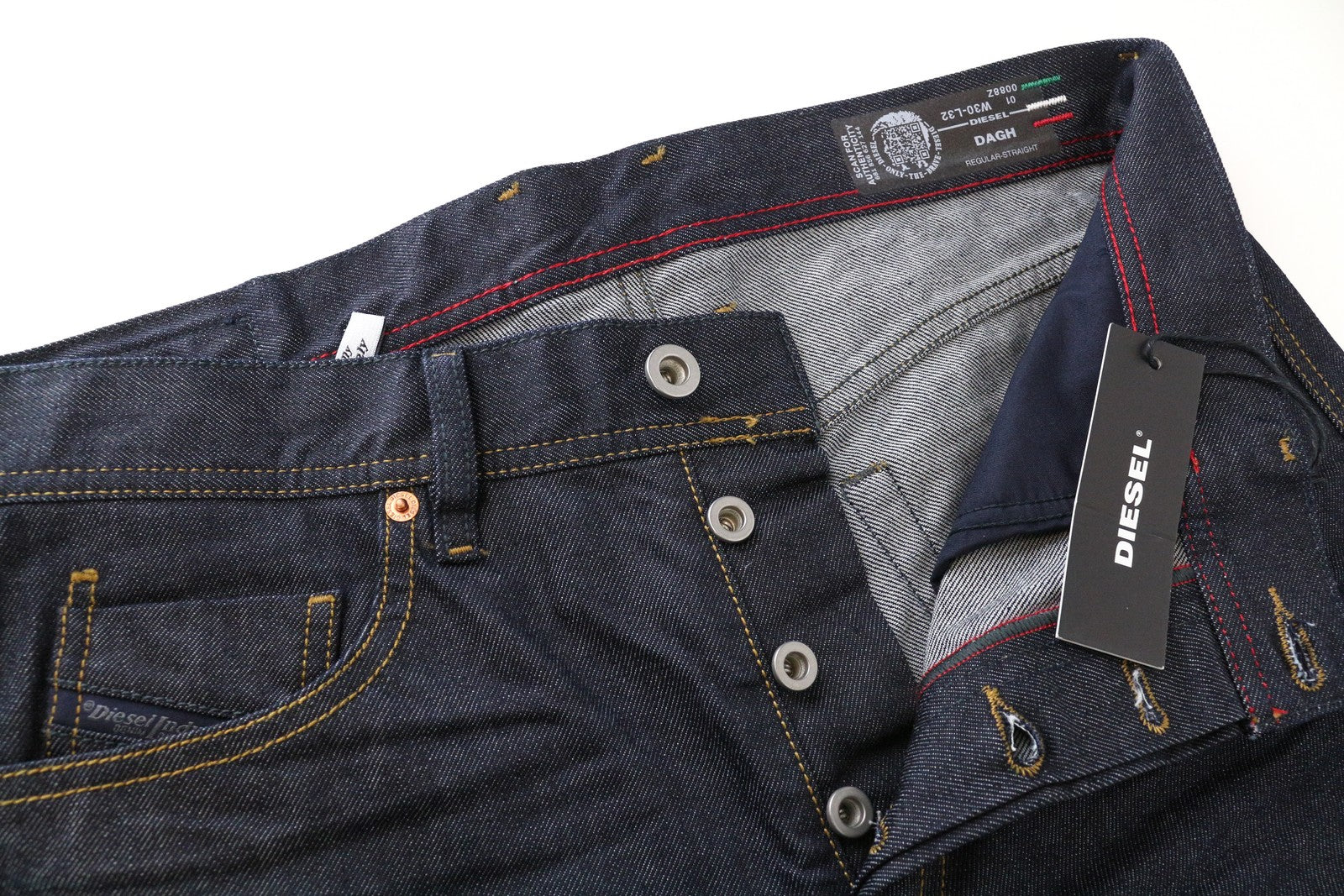 DIESEL Dagh 0088Z vyriški mėlyni medvilniniai tiesaus kirpimo džinsai W30 L32 su 5 kišenėmis