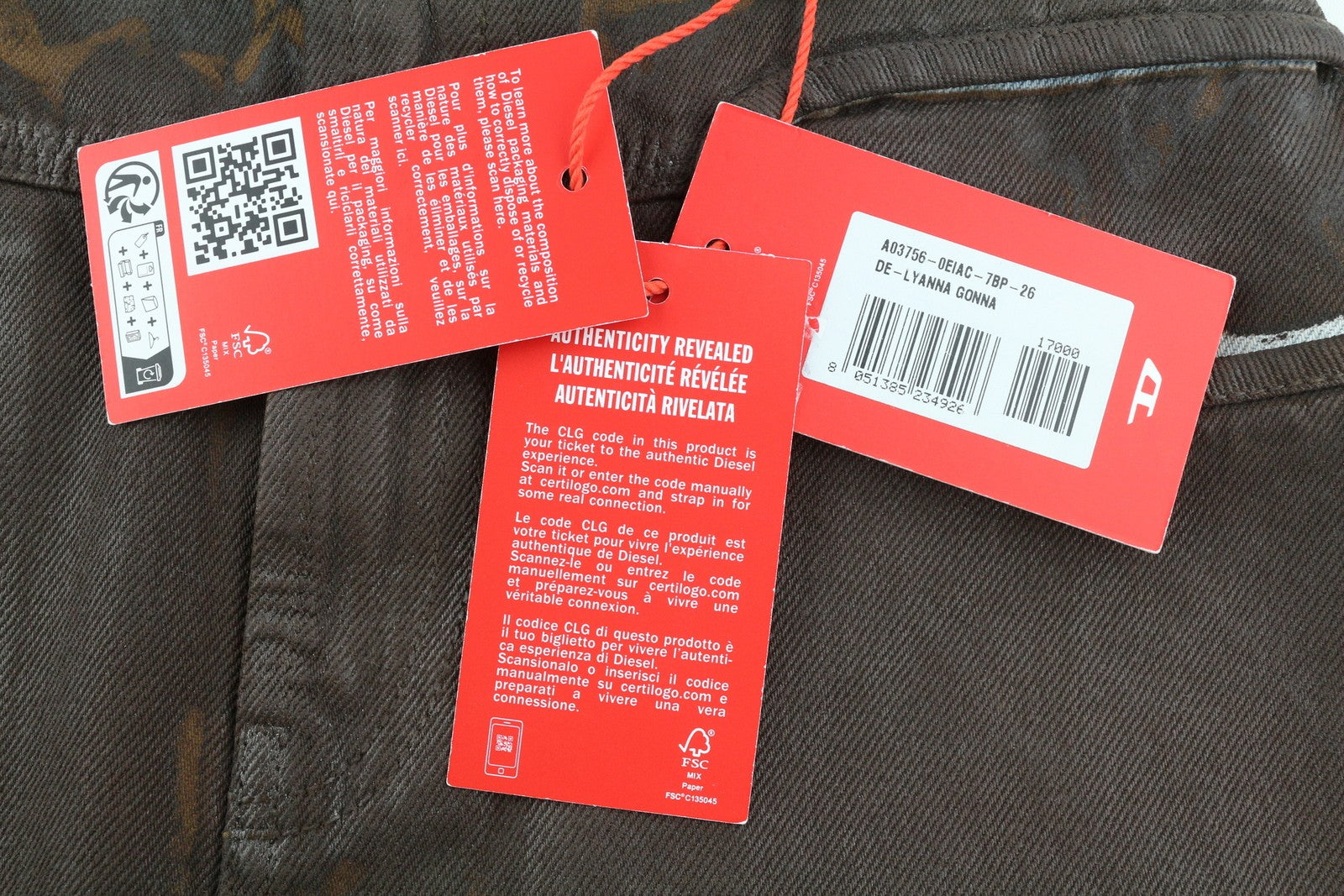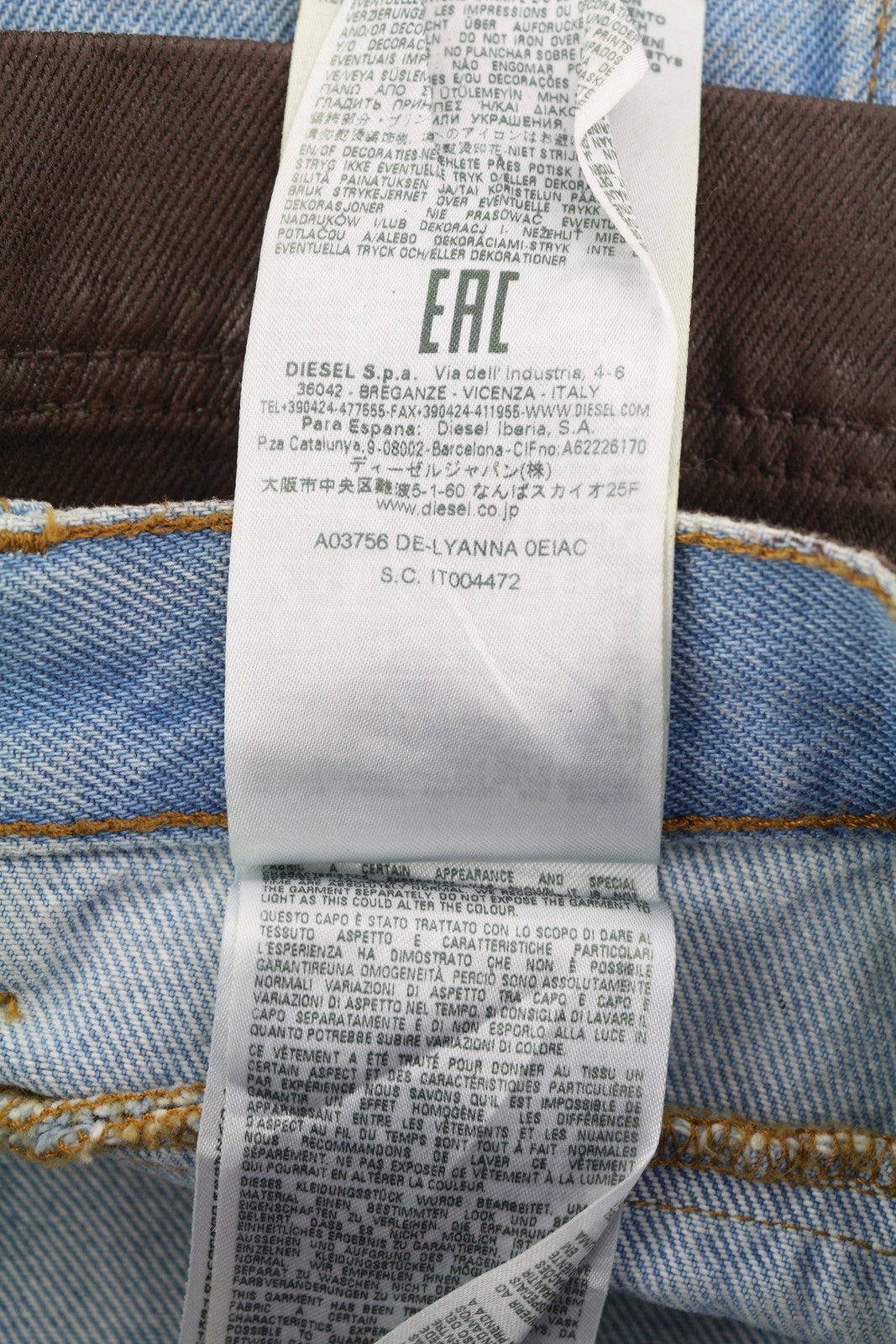 DIESEL De-Lyanna 0EIAC moteriškas sijonas W26 rudas dengtas blizgus džinsinis mini sijonas su užtrauktuku, rekomenduojama kaina – 295 €