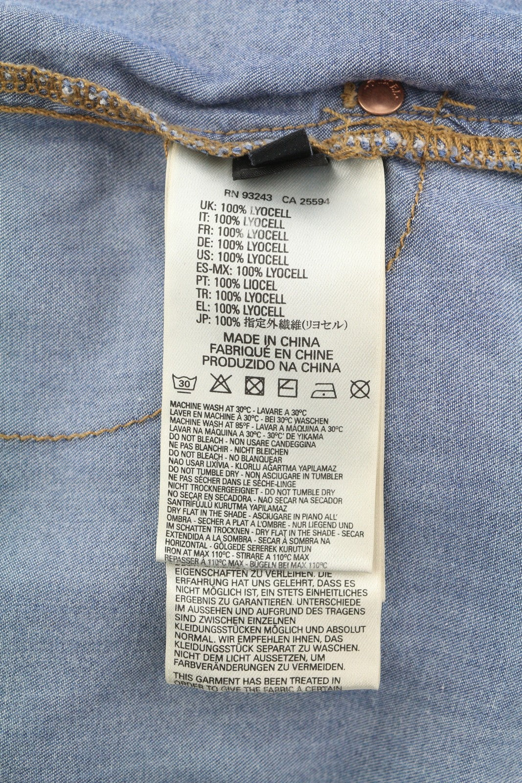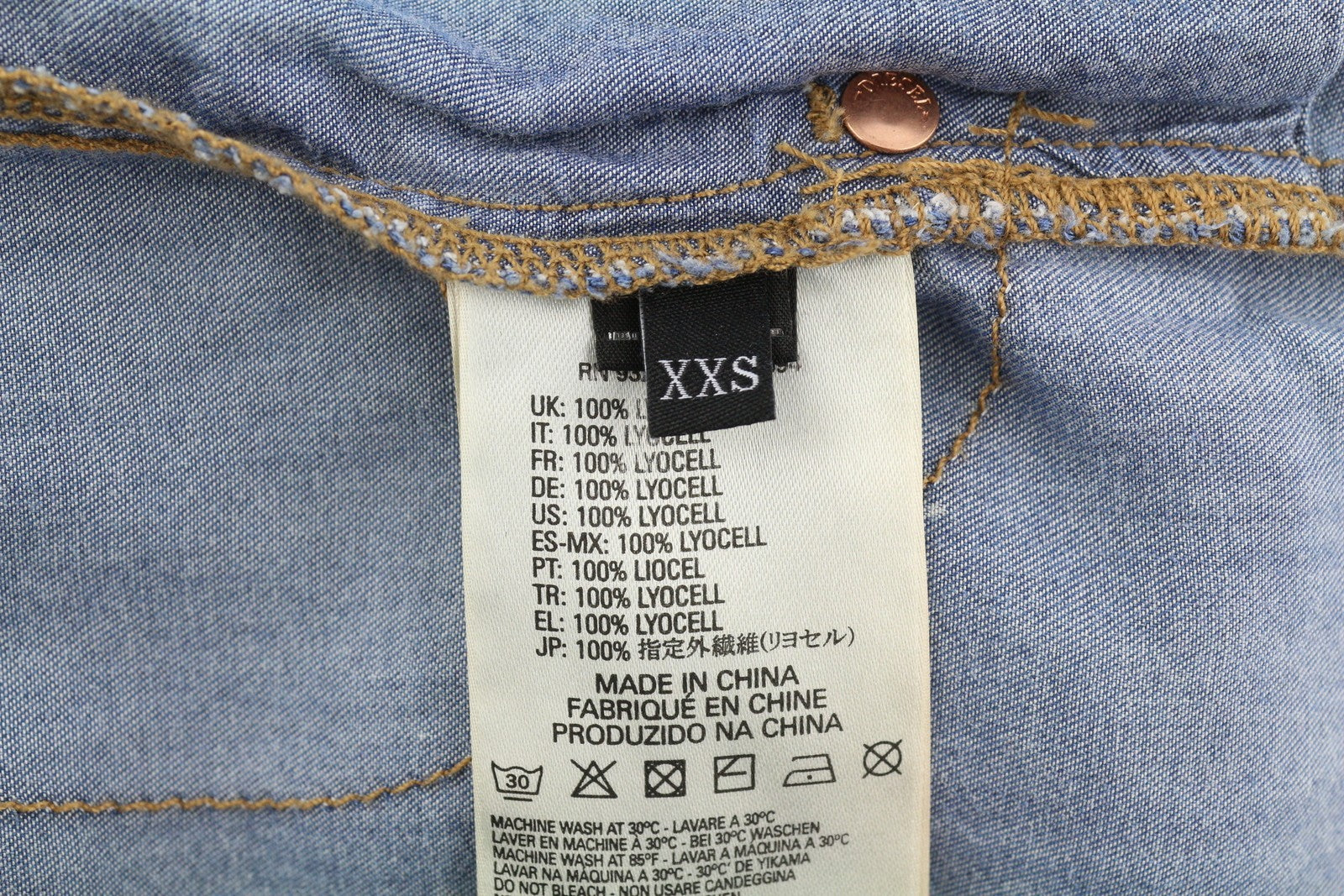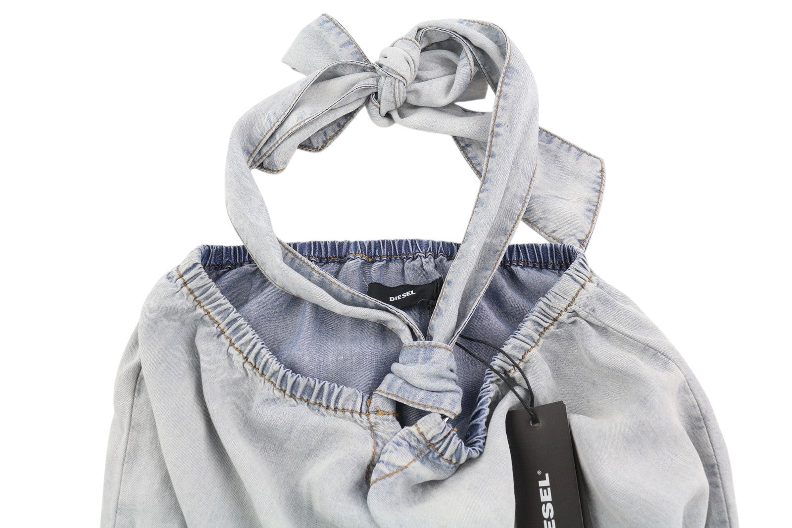 DIESEL De-Shanny moteriškas romperis 2XS, skalbtos mėlynos spalvos, džinso imitacijos, su elastinėmis juosmens kišenėmis.