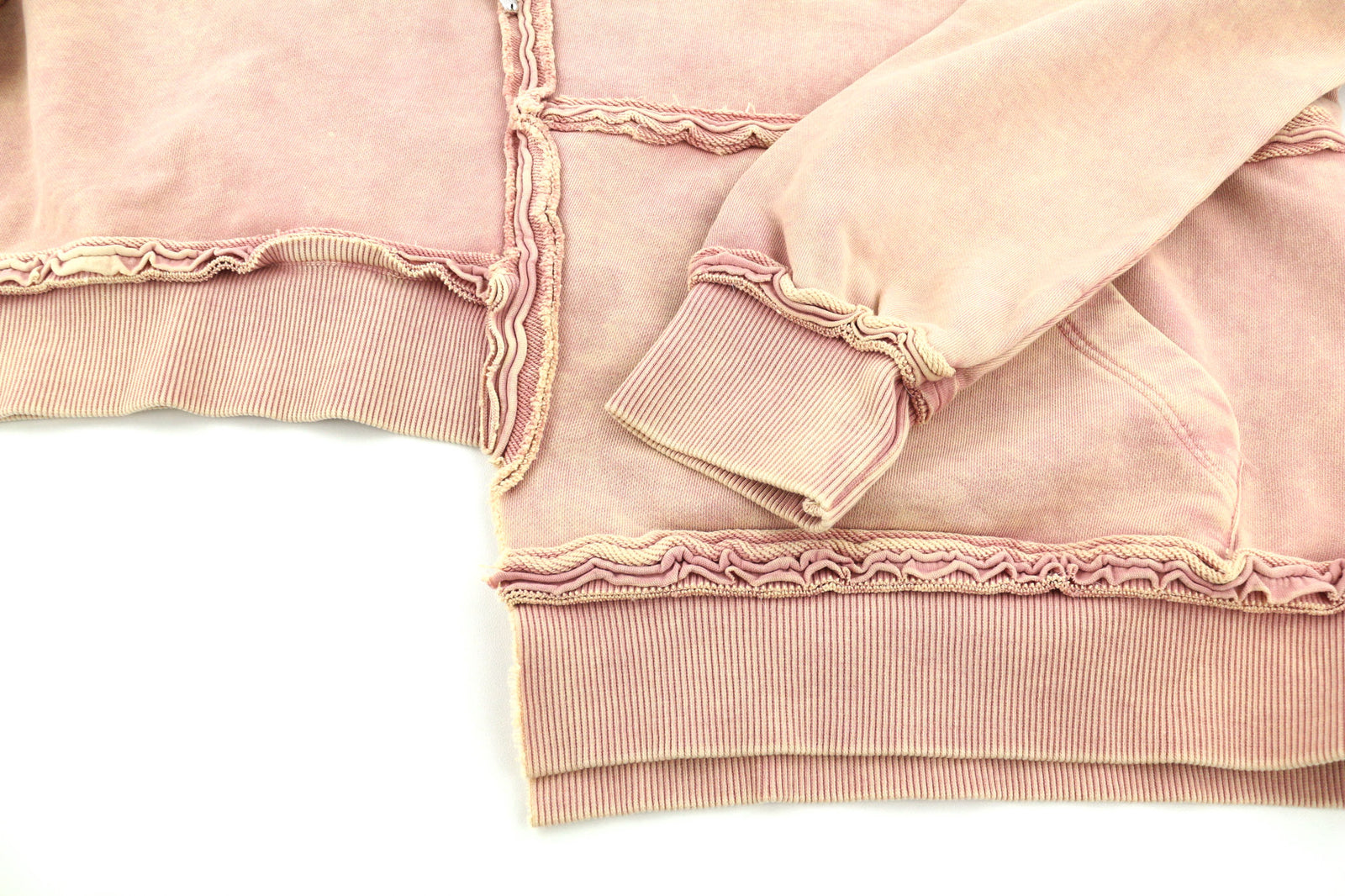 DIESEL F-Mikky Felpa moteriškas džemperis su gobtuvu S su persikų spalvos asimetriška kišene ir gobtuvu. Rekomenduojama kaina – 195 €.