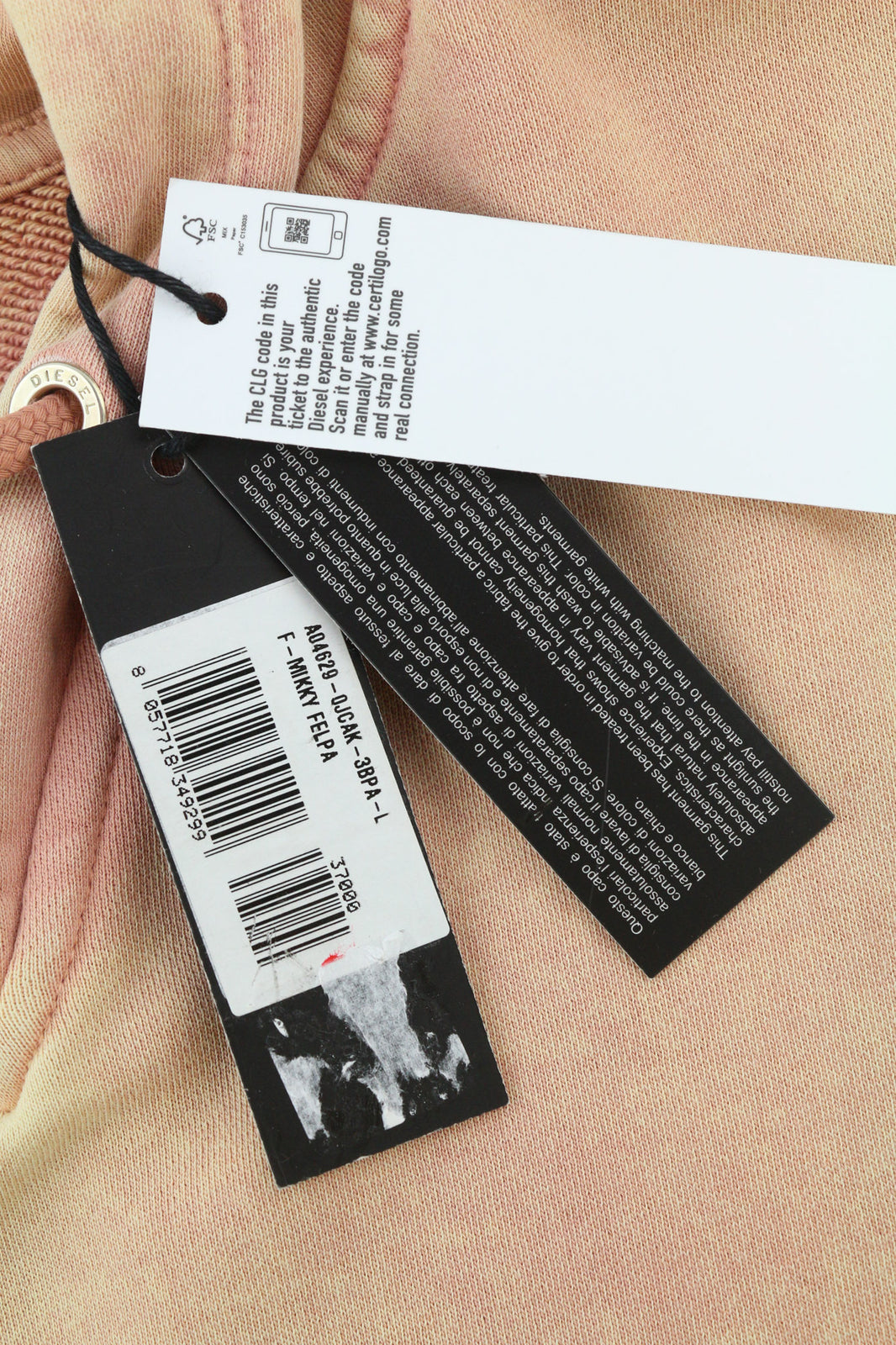 DIESEL F-Mikky moteriškas džemperis su gobtuvu L dydžio, persikų spalvos, asimetriškas megztinis su gobtuvu, rekomenduojama kaina – 195 €