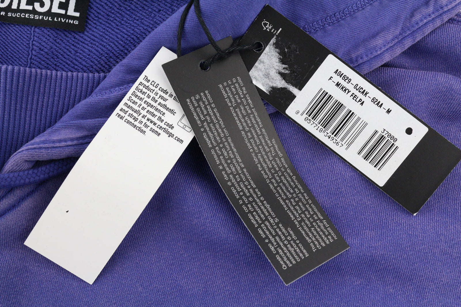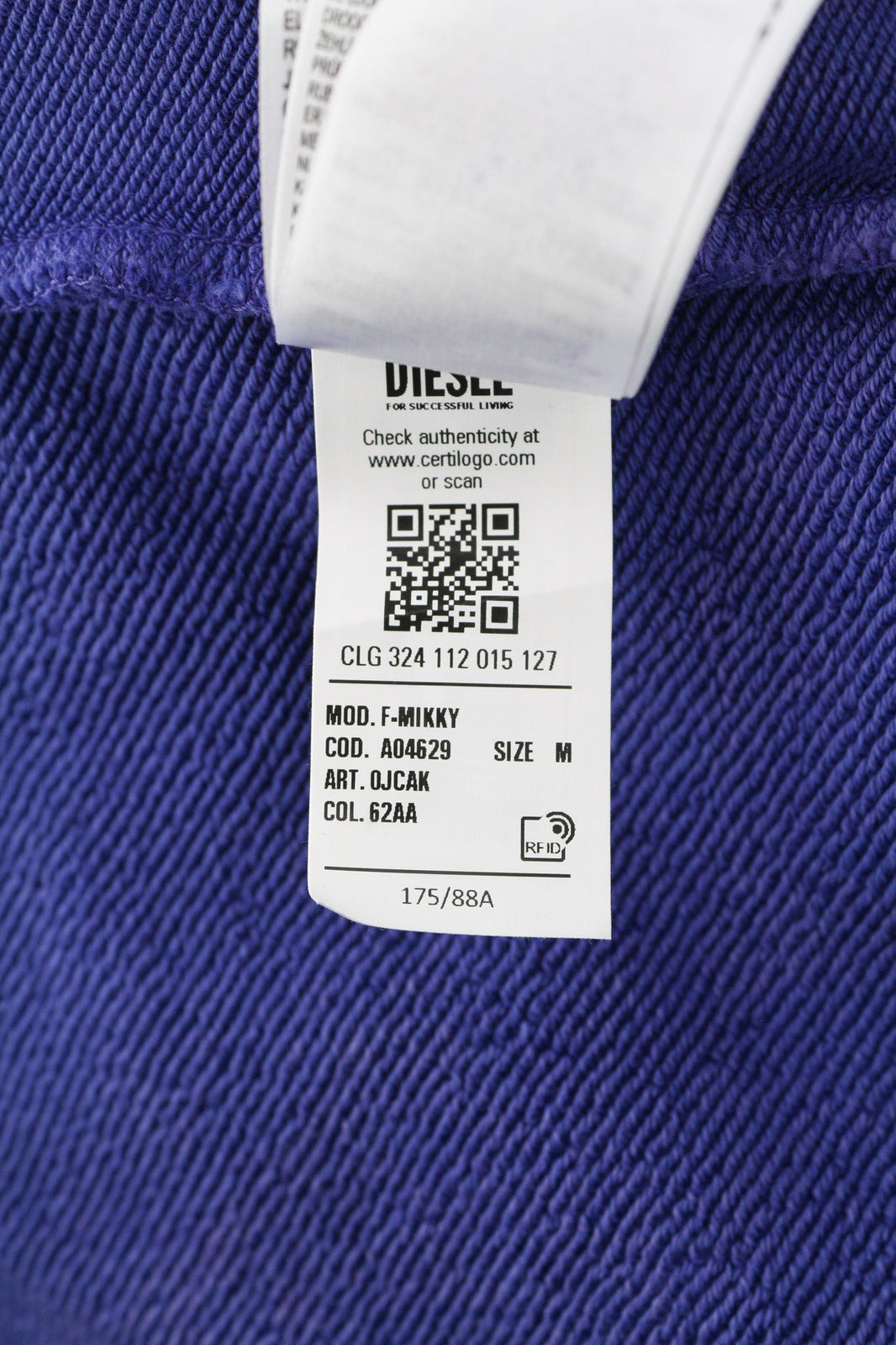 DIESEL F-Mikky moteriškas džemperis su gobtuvu, mėlynas, skalbtas, asimetrinis, su kišene. Rekomenduojama kaina – 195 €.