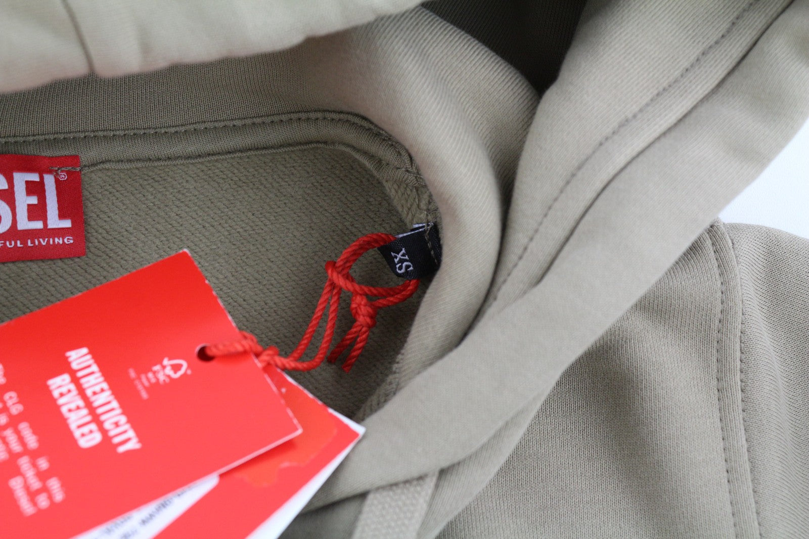 DIESEL F-Reggy-Hood-Doval-P moteriškas džemperis su gobtuvu XS dydžio, šviesiai rudas, rekomenduojama kaina – 135 €
