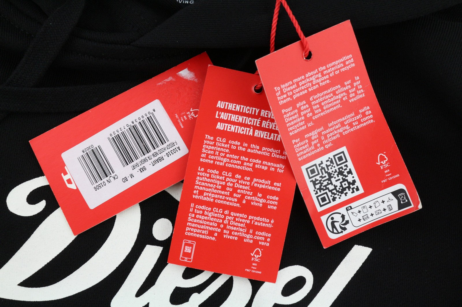 DIESEL F-Reggy-Hood moteriškas džemperis su gobtuvu M, juodas, su gobtuvu ir megztiniais dirželiais, rekomenduojama kaina – 150 €