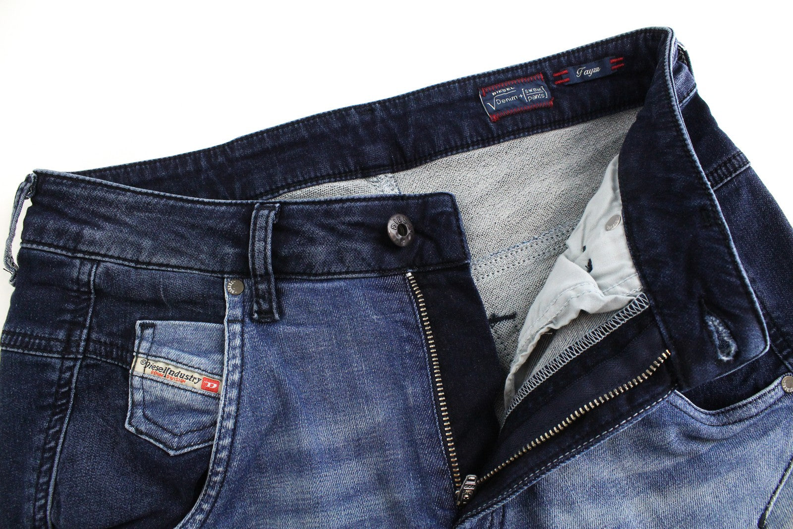 DIESEL Fayza-NE 0667A moteriškos W25 Boyfriend mėlynos Jogg džinsinės kelnės su užtrauktuku, žemu tarpkoju