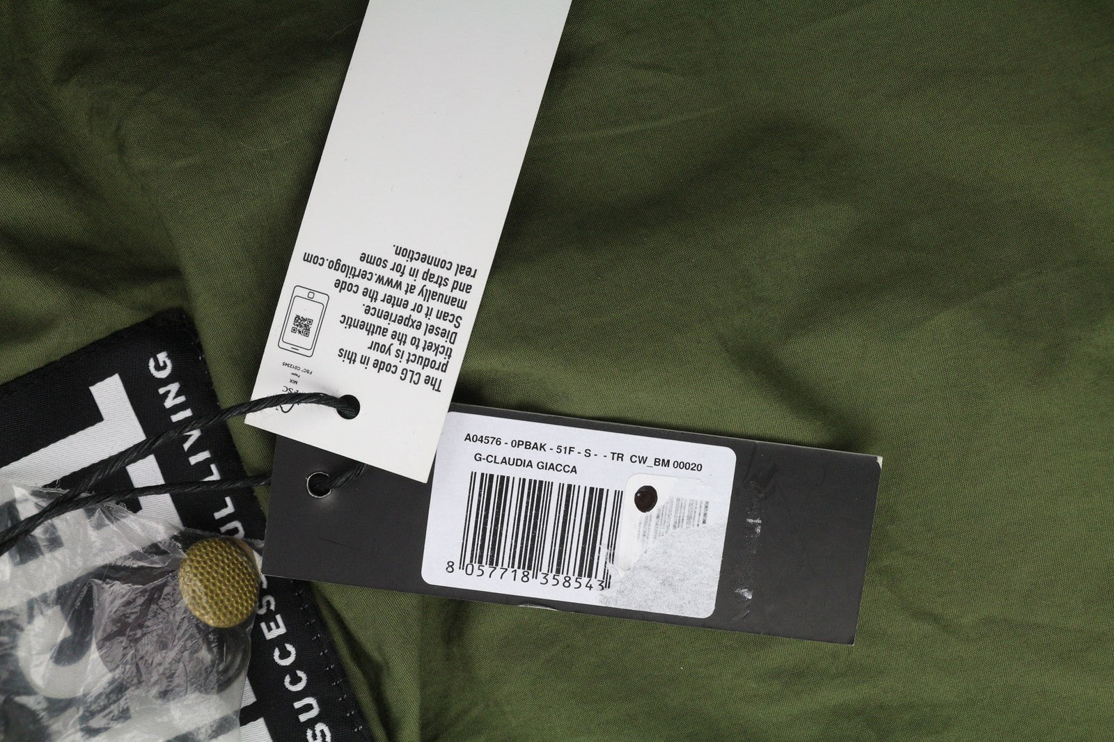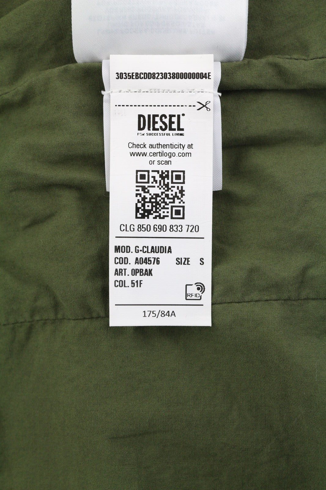 DIESEL G-Claudia moteriška striukė S, chaki spalvos, žalia, lininio audinio, su raišteliu juosmenyje.