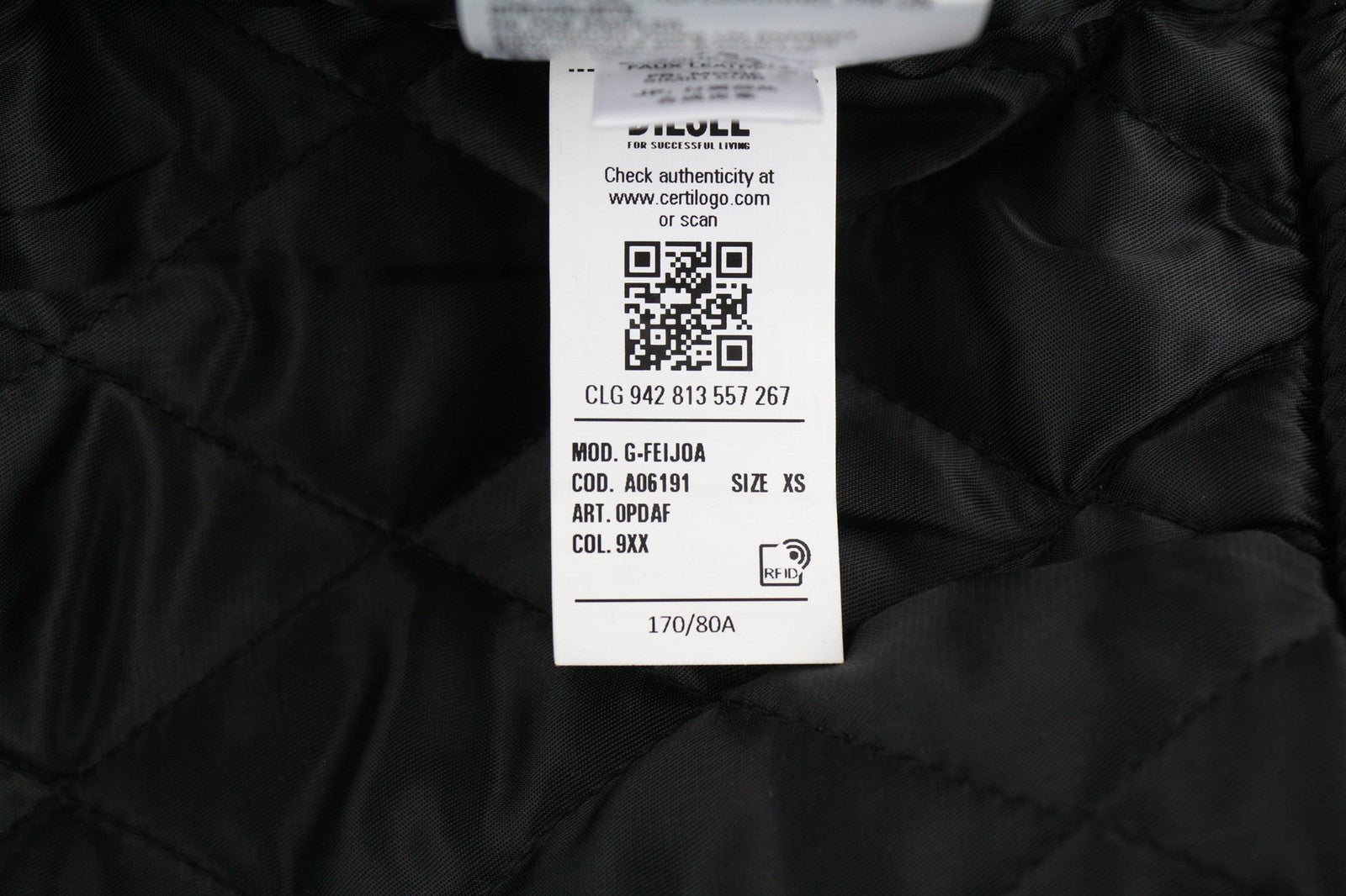DIESEL G-Feijoa moteriška striukė XS, juoda, dengta, su izoliuotu kaklu ir pamušalu, RRP 395 €