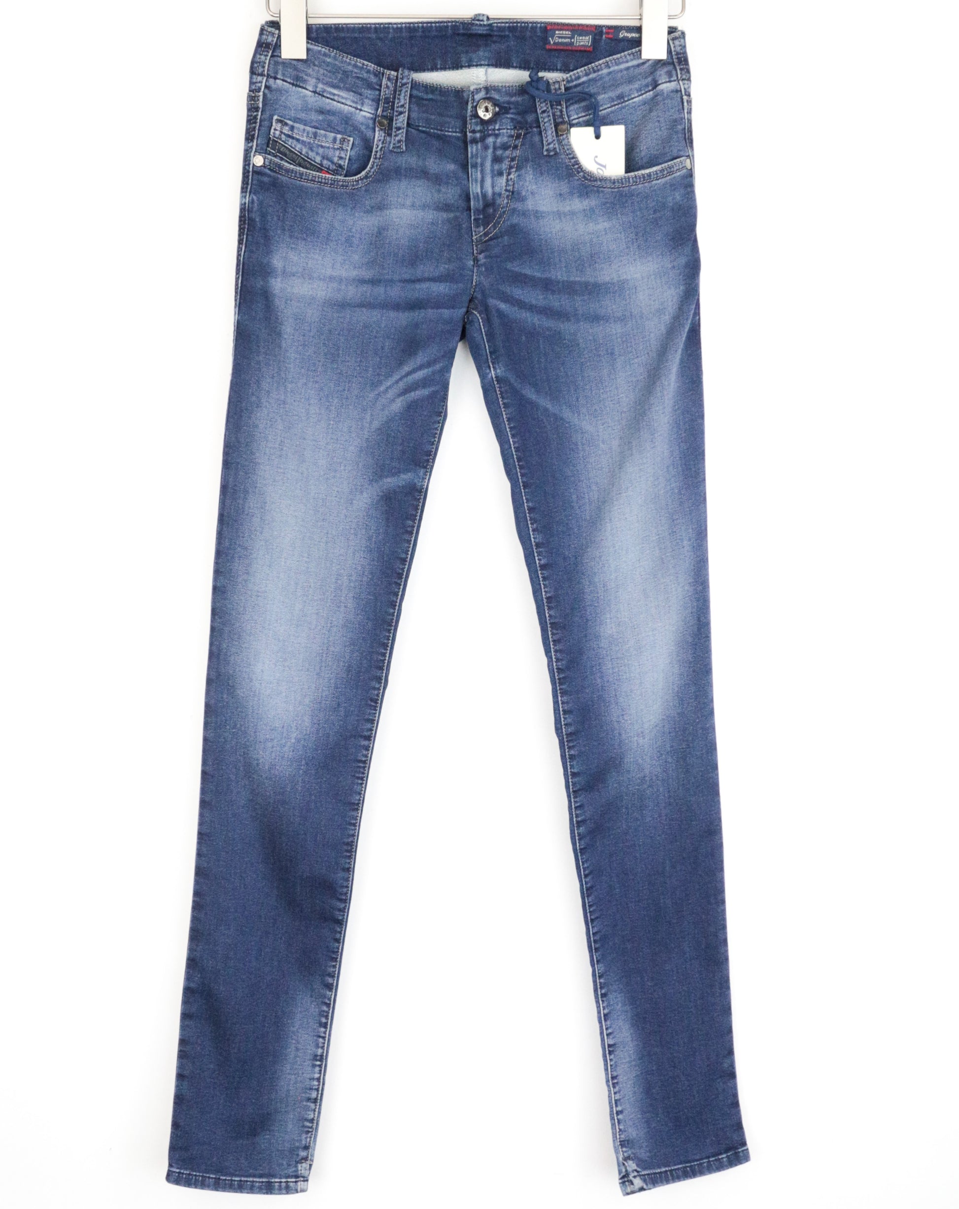 DIESEL Grupee-Ne 0674Y moteriškos W25 mėlynos medvilninės plonos, tamprios džinsinės jogg kelnės.