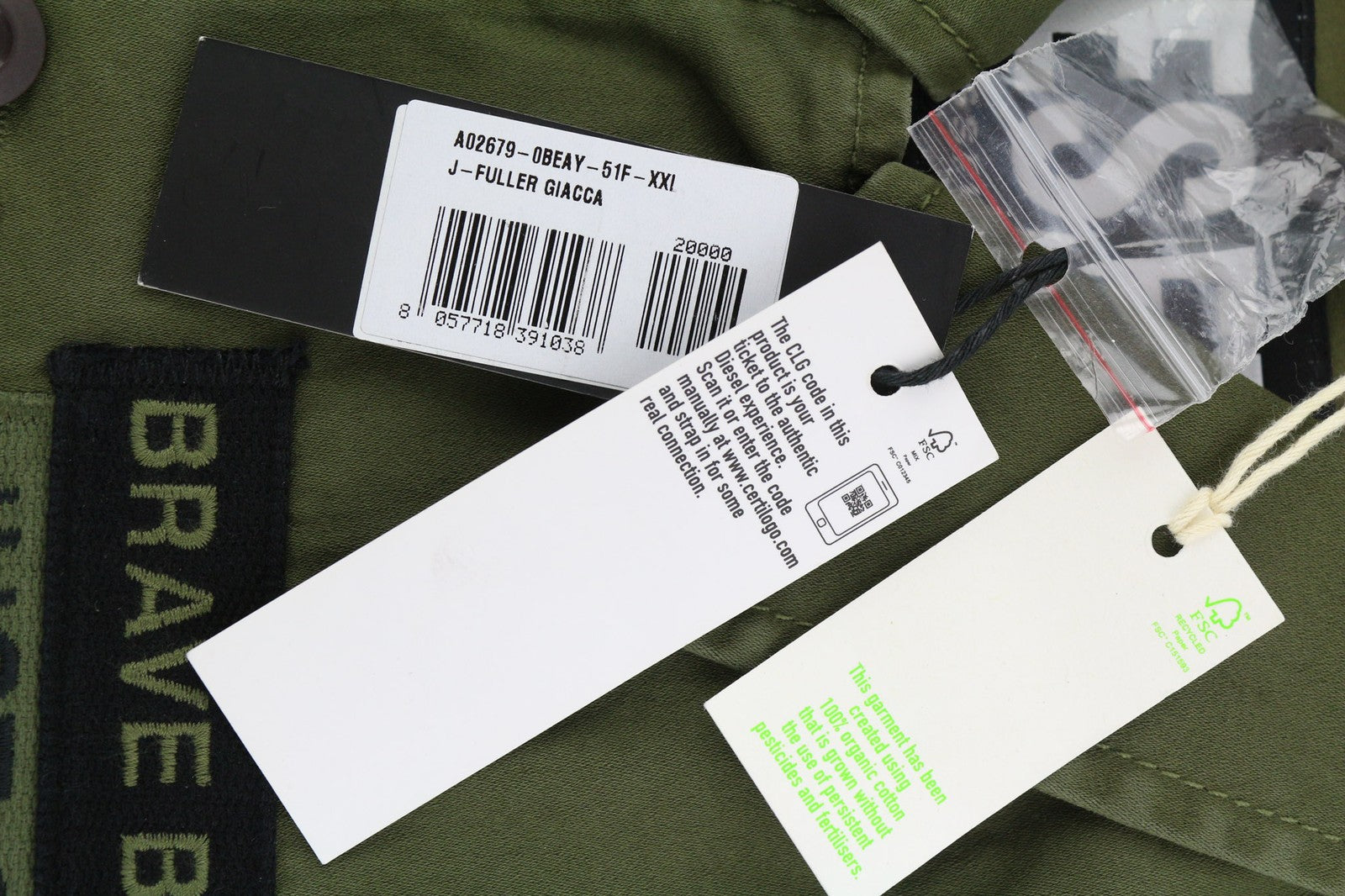 DIESEL J-Fuller vyriška striukė 2XL spalvos chaki spalvos marškinėliai su sagomis apykakle, rekomenduojama kaina – 295 €