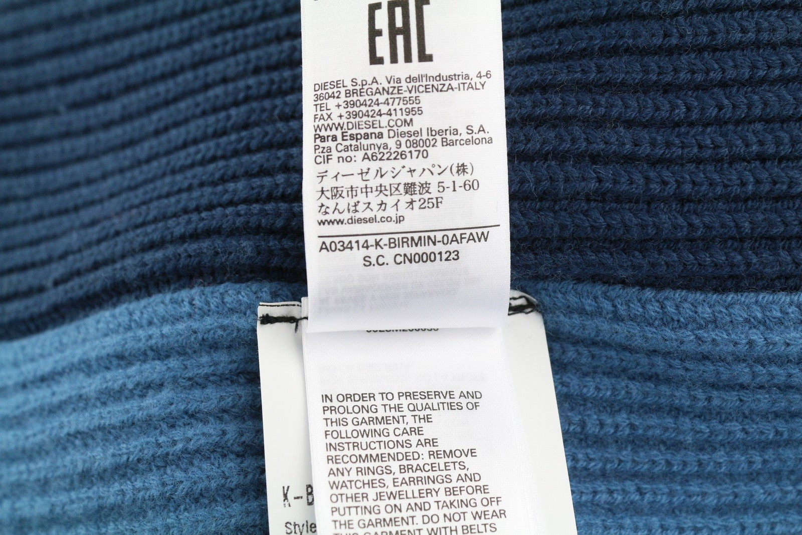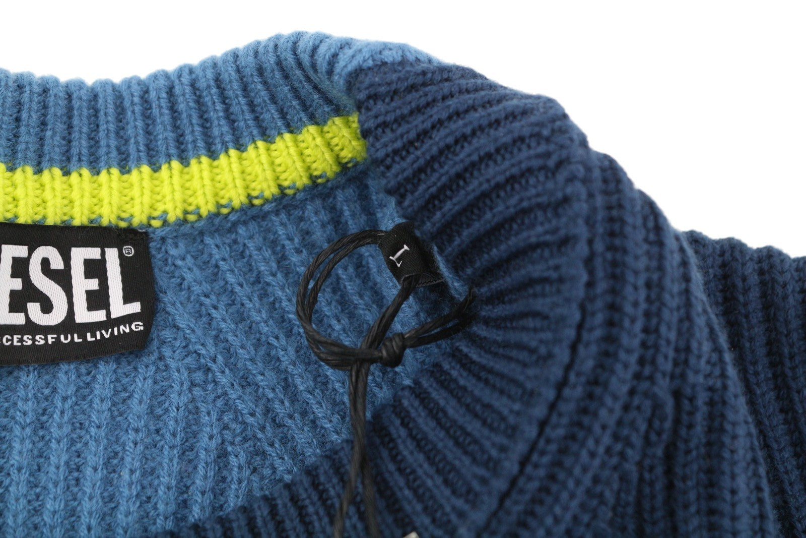 DIESEL K-Birmin vyriškas megztinis L dydžio, mėlynas, megztinis su apvalia kaklu, megztas vilnonis tamprus audinys