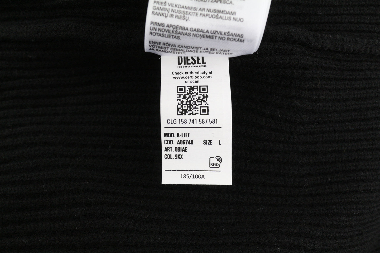 DIESEL K-Liff vyriškas megztinis L dydžio, juodas, vilnonis megztinis su apvalia apykakle, rekomenduojama kaina – 275 €